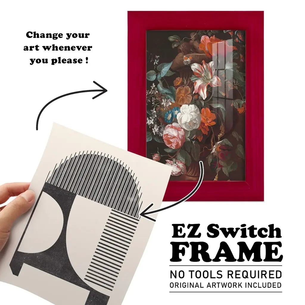 Unknown Space IV -EZ SWITCH Framed Print w/glass-Cherry Red A delightful, framed print. Featuring a solid wood frame with real wood glass. This premium print is giclee quality. In addition, every frame features a removable back and table top stand. This allows you to change your art in the future or to just stand the art on a table for a new look. We are sure you'll enjoy our new series of EZ SWITCH Framed Art. Solid Wood Frame Real Glass Removable / Replaceable Art Built in Tabletop Stand Sizes range from 4x6 up to 12x15 - buy just one or pair them up as sets as you see fit.