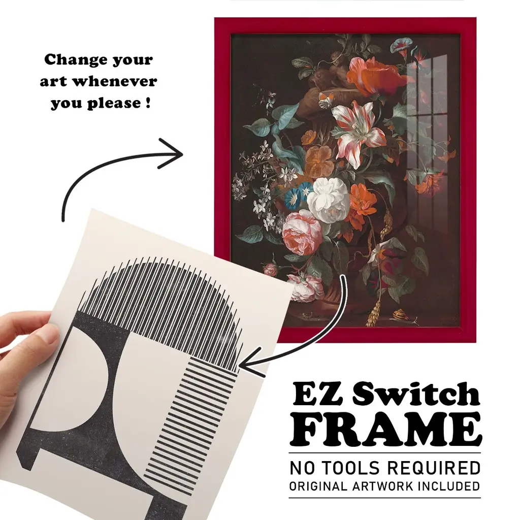 Unknown Space IV -EZ SWITCH Framed Print w/glass-Cherry Red A delightful, framed print. Featuring a solid wood frame with real wood glass. This premium print is giclee quality. In addition, every frame features a removable back and table top stand. This allows you to change your art in the future or to just stand the art on a table for a new look. We are sure you'll enjoy our new series of EZ SWITCH Framed Art. Solid Wood Frame Real Glass Removable / Replaceable Art Built in Tabletop Stand Sizes range from 4x6 up to 12x15 - buy just one or pair them up as sets as you see fit.