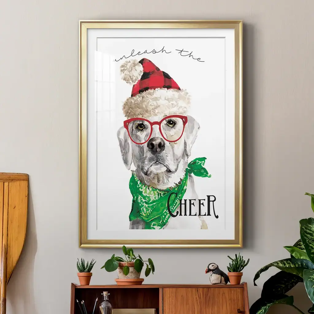 Unleash the Cheer Premium Framed Print - Ready to Hang A Premium Framed Print created to last. Framed in distressed wood and available in an array of sizes and colors Featuring a beveled a solid wood stretcher bar, each piece comes ready to hand 4 SIZES AVAILABLE 30.5''X42.5'' - Overall Size 26.5'X36.5'' - Overall Size 22.5''x30.5'' - Overall Size 18.5''x24.5'' - Overall Size Each piece is made to order. Each piece comes with hanging hardware. Made in the USA Ready to Hang Giclee Paper Print Acrylic Glass Beveled Matt Board