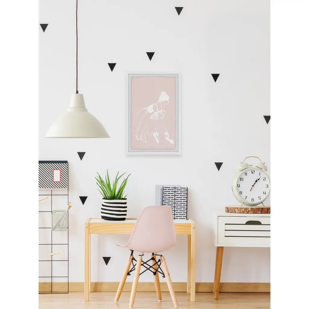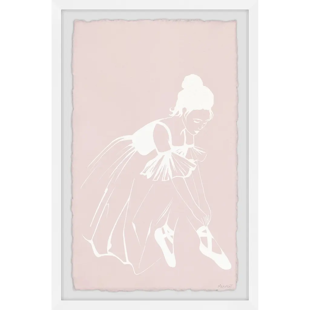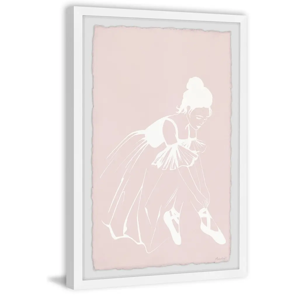 Great for ballet lovers and dancers, this pink and white print showcases a young dancer tying her ballet shoes. Proudly printed in the USA, this piece is printed on high quality archive paper and professionally hand-framed. With wall-mounting hooks included, this artful accent is ready to hang up as soon as it reaches your front door. • Top quality Giclee print on high resolution Archive Paper • Hand cut deckled edges • High quality durable non-warping frame • Finished under shatter resistant plexiglass • Arrives ready to hang • Includes a certificate of authenticity • Printed in the USA