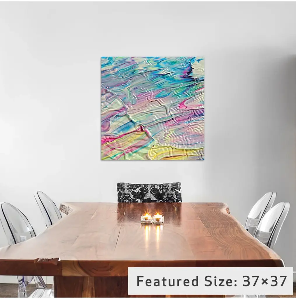 The artwork is crafted with 100-percent cotton artist-grade canvas, professionally hand-stretched and stapled over pine-wood bars in gallery wrap style - a method utilized by artists to present artwork in galleries. Fade-resistant archival inks guarantee perfect color reproduction that remains vibrant for decades even when exposed to strong light. Add brilliance in color and exceptional detail to your space with the contemporary and uncompromising style of iCanvas.Orientation : SquareShape : SquareArtist : Mark LovejoyHeight : 37Width : 37Thickness : 1.5Product Type :Gallery wrapped canvas artNew :Ready to be displayed right out of the box, including free hanging accessories and instructions for a quick and easy hanging process that achieves the best positioning results.Quality Wood Bars :Shrink-resistant wooden-bar frame with tensioning wedges that allow for tightening of the canvas from the reverse side.Dependent and Fast:Produced by the largest US canvas art supplier.