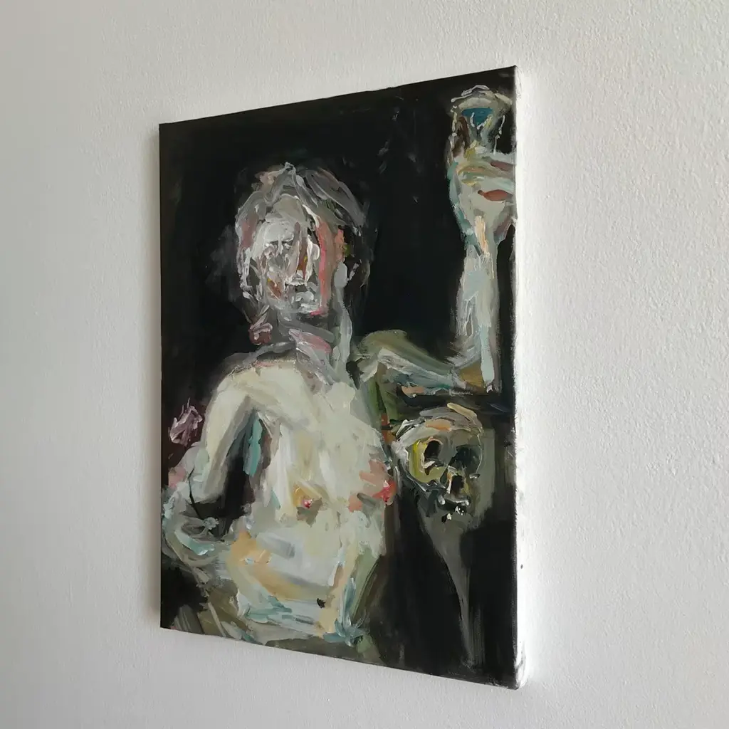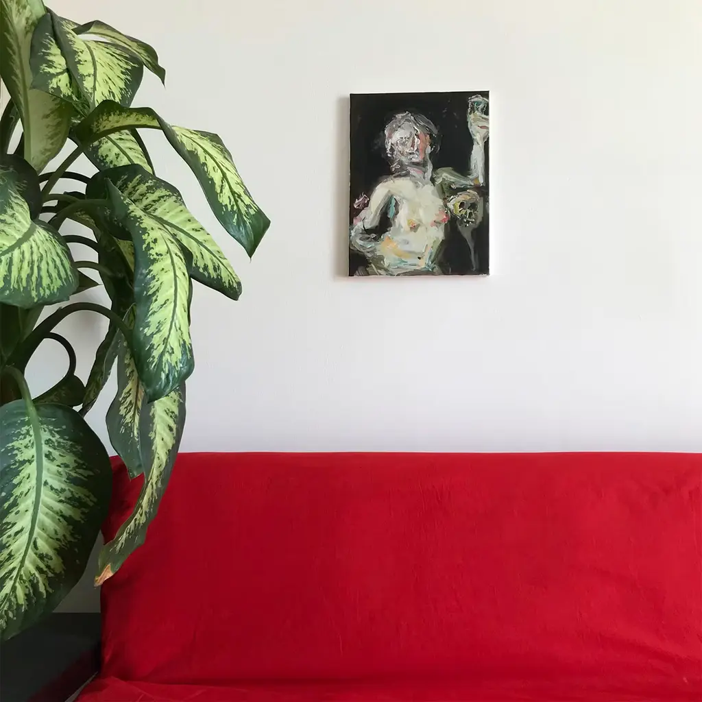 This superb painting by artist Adriano Annino converges and blends the different suggestions he experienced at art exhibitions such as the Untitled 2020 in Venice and Hypothesis by Philippe Parreno in Milan. This is a unique work of art. It is mounted on wooden frame support. Delivered with a certificate of authenticity.