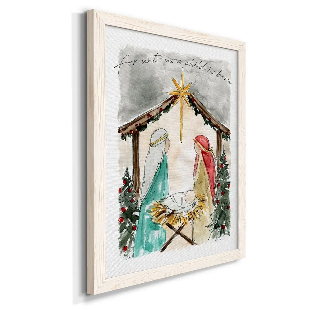 Unto Us A Child Is Born-Premium Framed Canvas - Ready To Hang - 27.5x37.5 - Maple