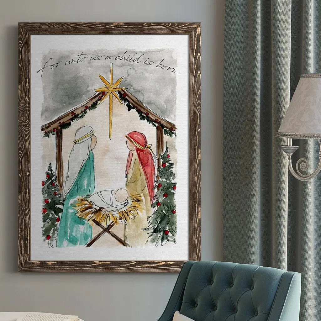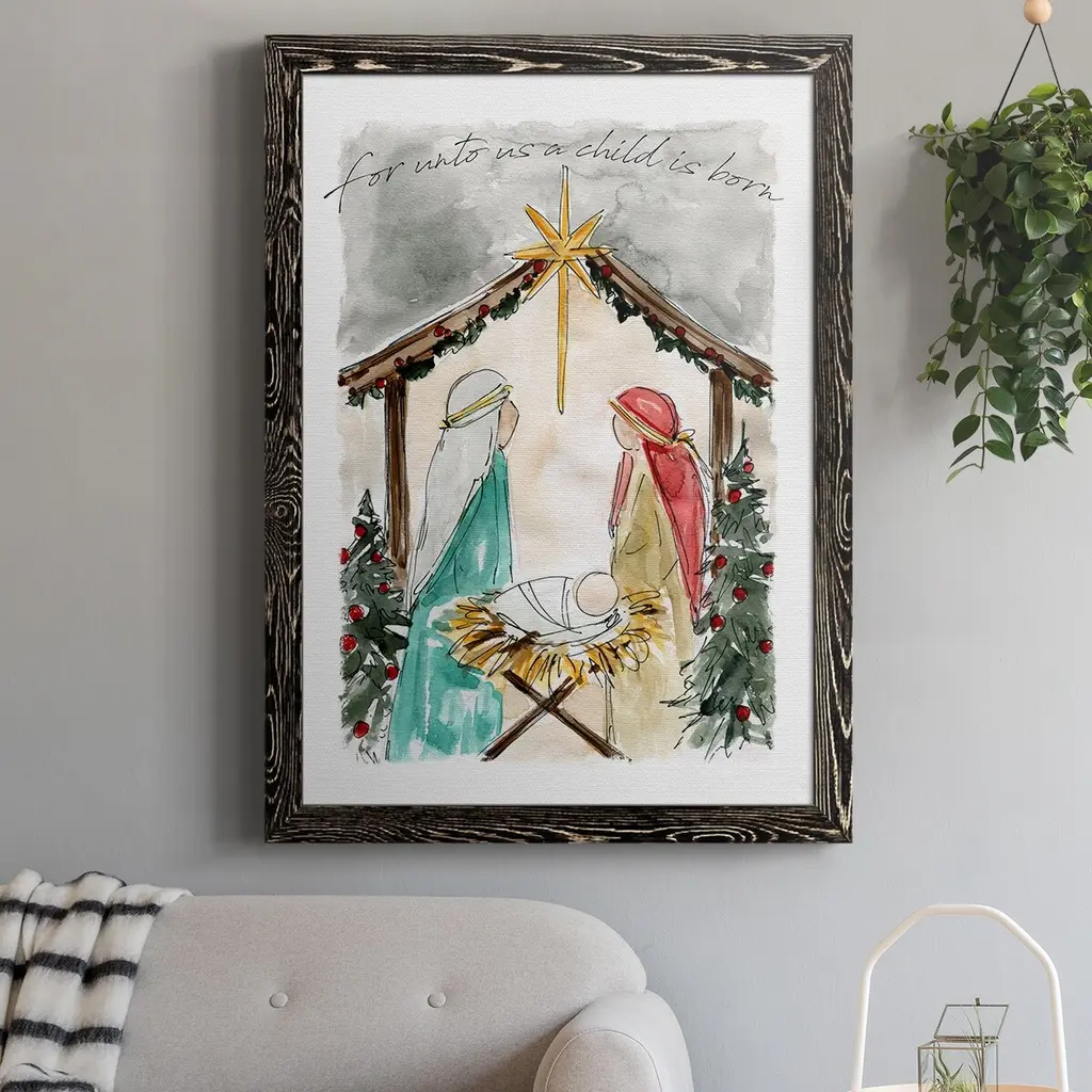 Unto Us A Child Is Born-Premium Framed Canvas - Ready To Hang - 27.5x37.5 - Walnut