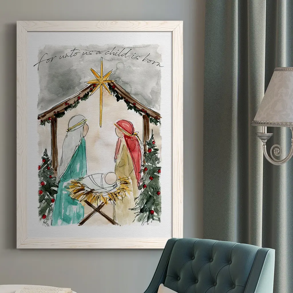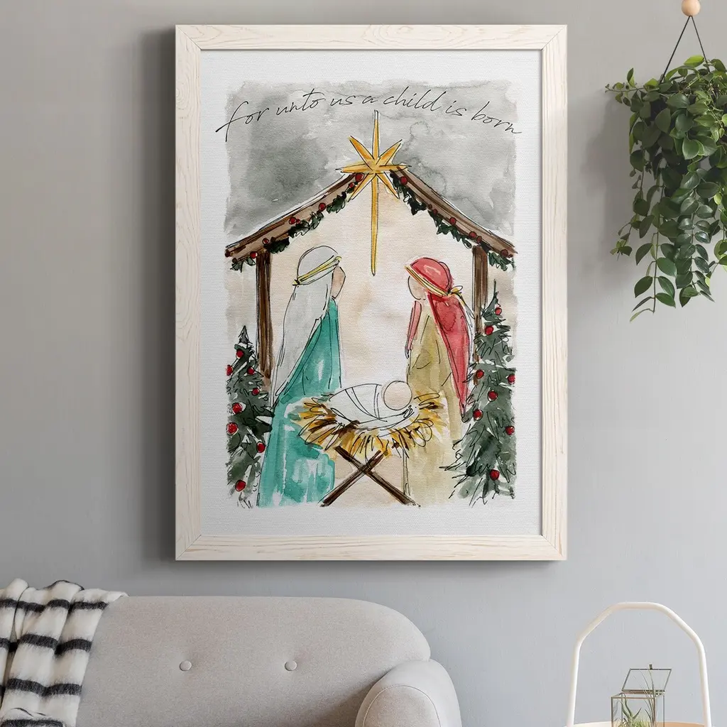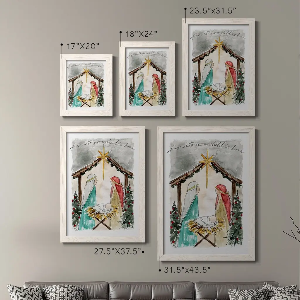 Unto Us A Child Is Born-Premium Framed Canvas - Ready To Hang - 27.5x37.5 - White