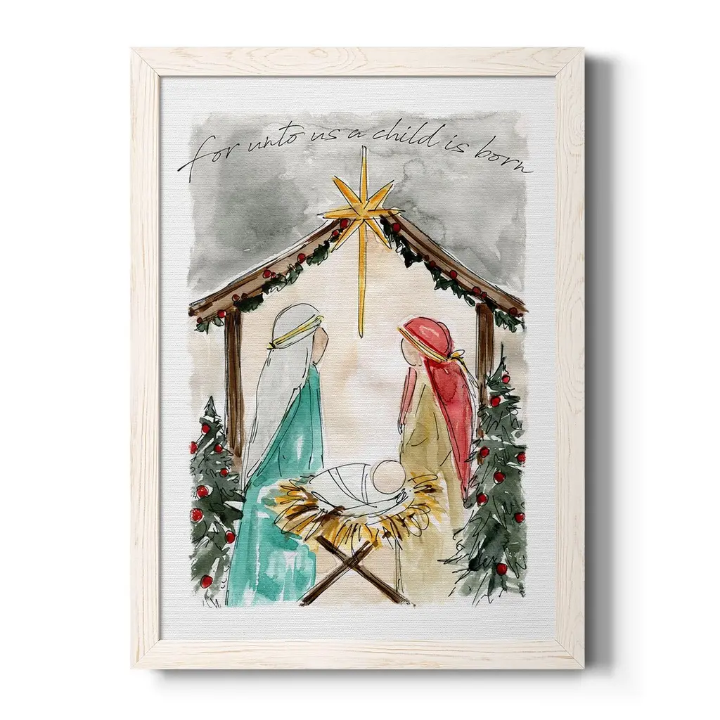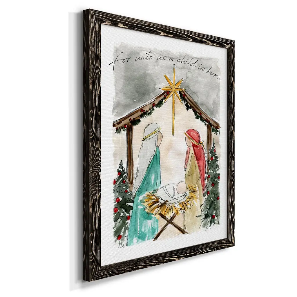 Unto Us A Child Is Born-Premium Framed Canvas - Ready To Hang - 31.5x43.5 - Maple