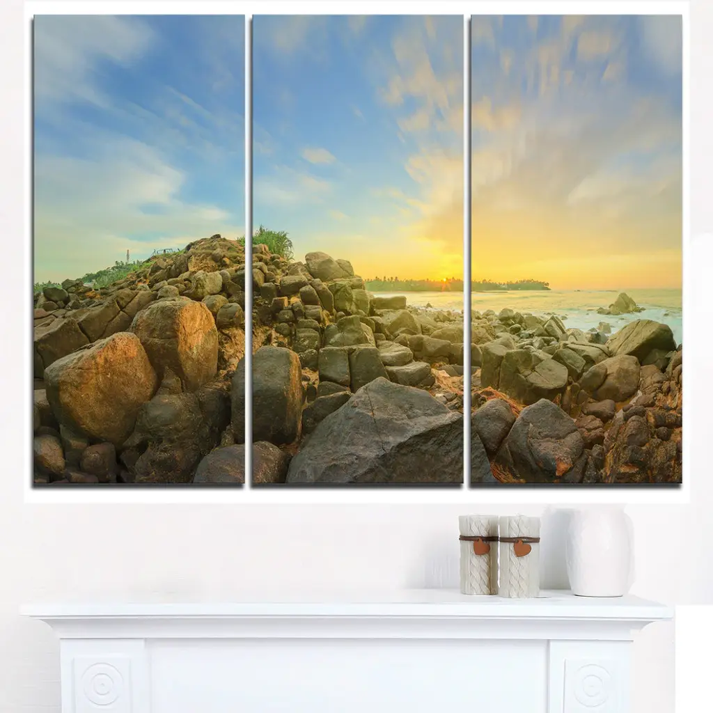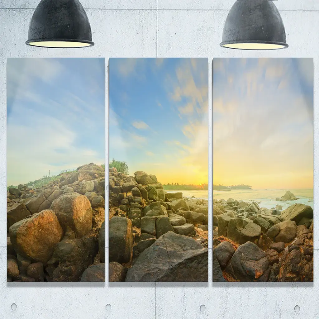 "Untouched Romantic Beach Of Sri Lanka" Metal Wall Art, 3 Panels, 36"x28"