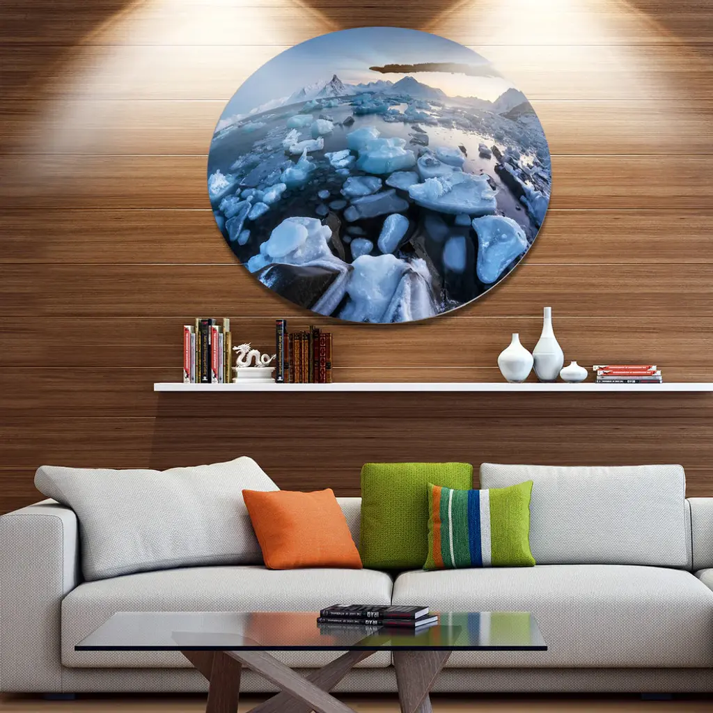Unusual Arctic Ice Landscape, Seashore Round Metal Wall Art, 36"