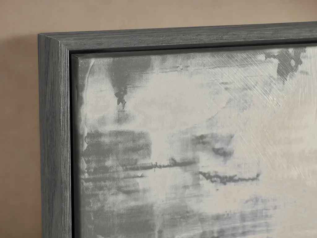 Up And About is an abstract piece illustrating the feeling of hope that makes a step forward and transitions into the uplifting light, even while stuck in the dark. With a passion for recording moments in her life, artist Bella Lane draws daily inspiration from enjoyable experiences at the beach and her travels around the world. Gallery wrapped giclee print on linen canvas. Features a gray-finished wood frame. Hangs vertically or horizontally from back-mounted D-rings. Artist: Bella Lane