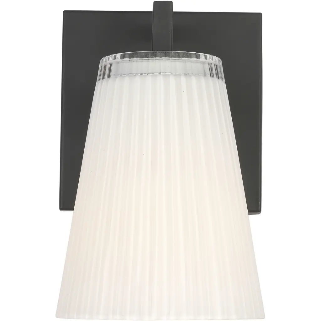 Upson features clear textured glass shades finished with a white interior that offers a soft layered glow. Available in Midnight Black, Satin Brass, Brushed Nickel, and Chrome. Upson offers flexibility in any application with one-light sconces, and two, three, and four-light vanities that are all available to be mounted up or down.