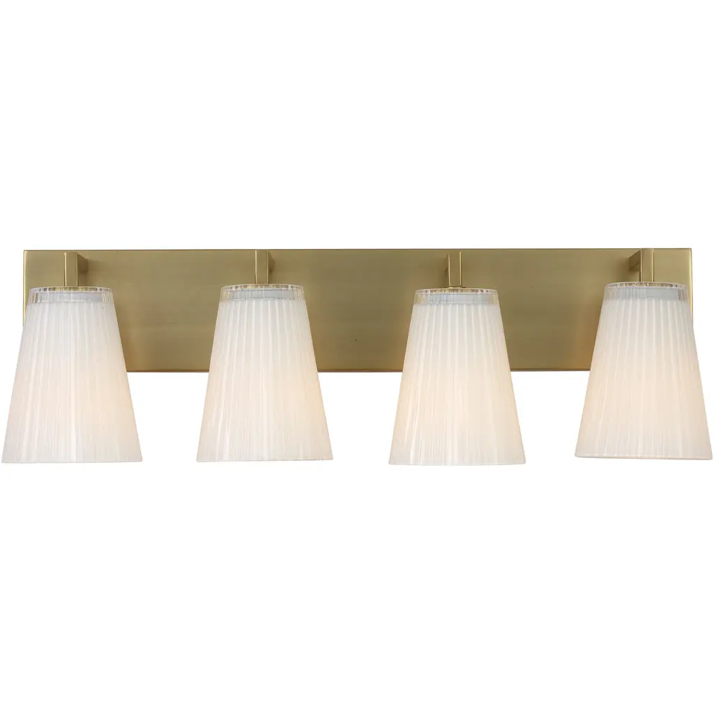 Upson features clear textured glass shades finished with a white interior that offers a soft layered glow. Available in Midnight Black, Satin Brass, Brushed Nickel, and Chrome. Upson offers flexibility in any application with one-light sconces, and two, three, and four-light vanities that are all available to be mounted up or down.