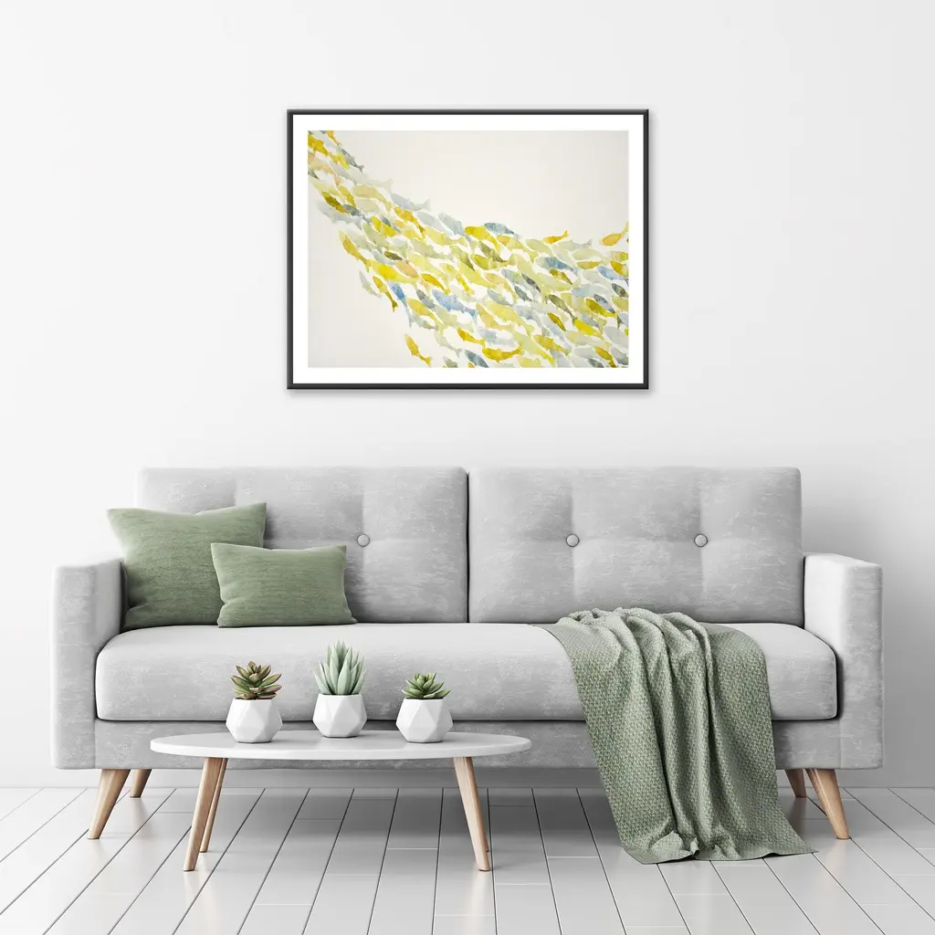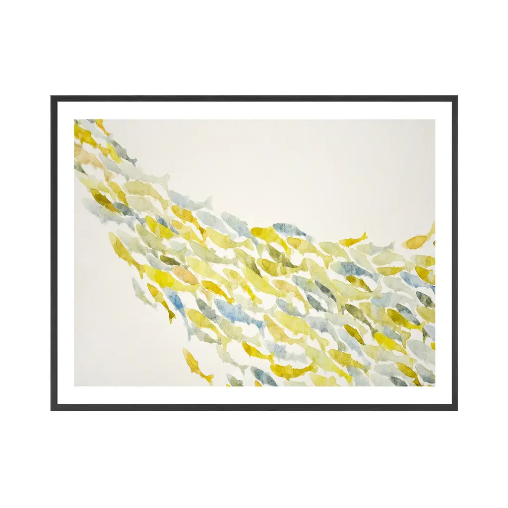 The exquisite group of yellow and gray toned fish shoaling as one, socially protect one another in this horizontal coastal art. The decorative Norman Wyatt artwork, 'Upstream' will complement your space with its transitional and contemporary aesthetic. This piece is handcrafted in Chattanooga, Tennessee by Ready2HangArt using a locally sourced artist print, with a frame and a rear hanger for simple installation. Offering a wide range of transitional subjects and unique textures, Norman Wyatt's collections will add interest to any modern or contemporary decor.