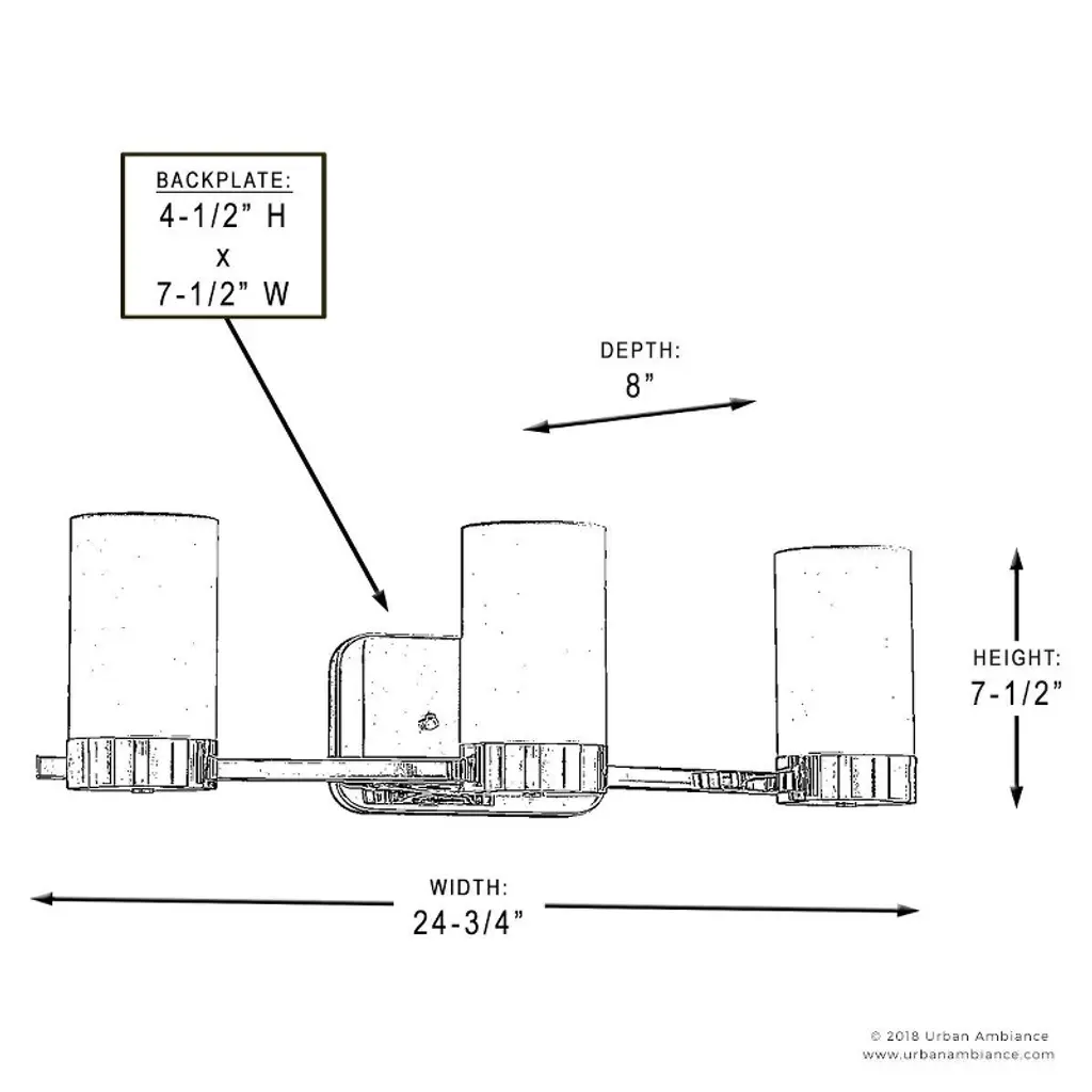 Urban Ambiance Luxury Contemporary Bathroom Vanity Light, 7.5"h X 24.75"w, Polished Chrome Finish, Uhp2292