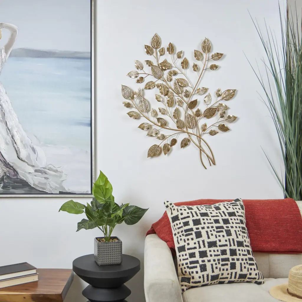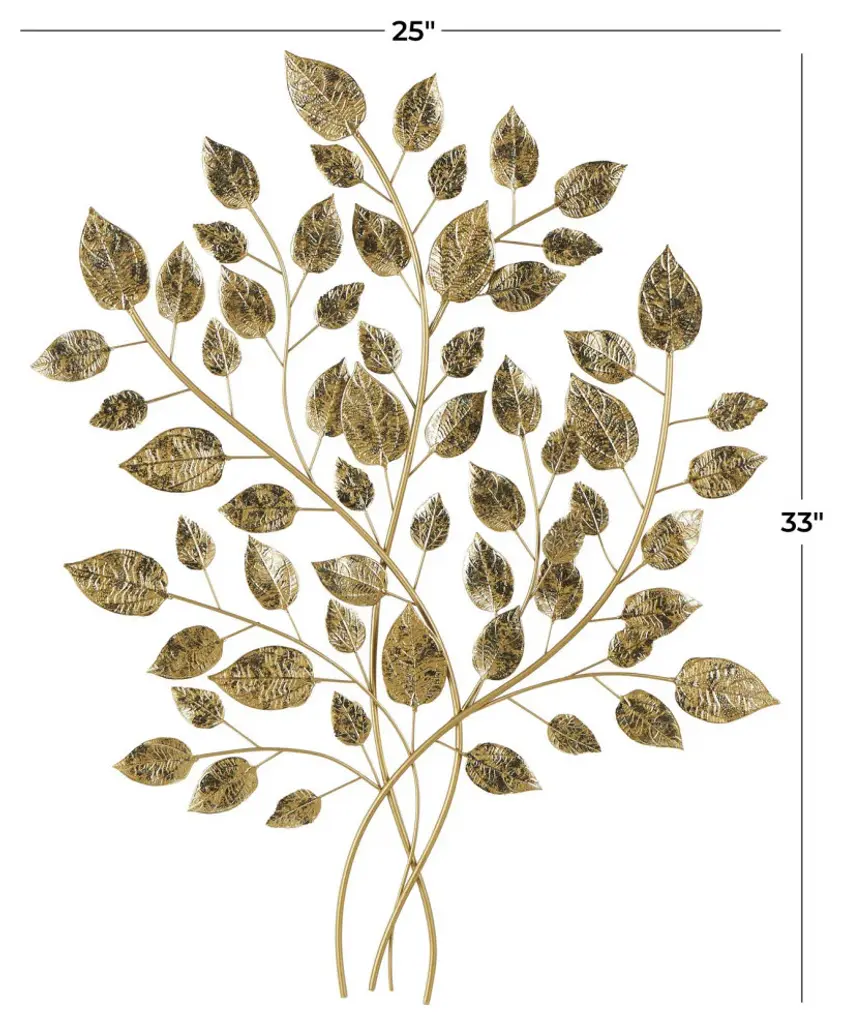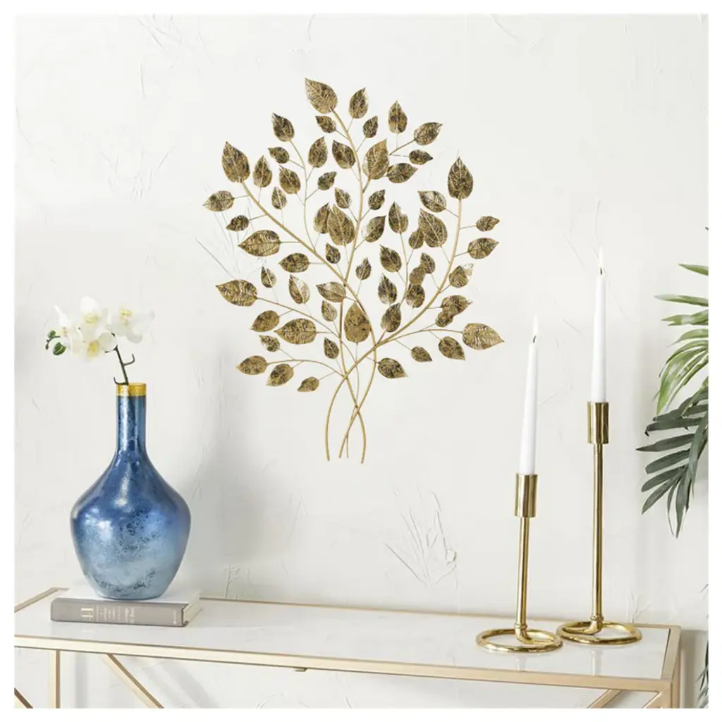Transform your living space with our exquisite Metal Wall Decor featuring a captivating branches and leaves theme. Crafted with attention to detail, this stunning piece adds a touch of nature-inspired elegance to your home. The gold color enhances its luxurious appeal, making it a focal point in any room.