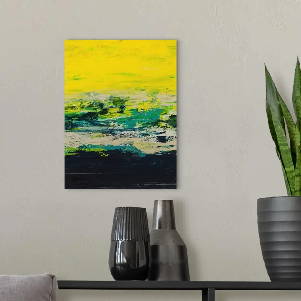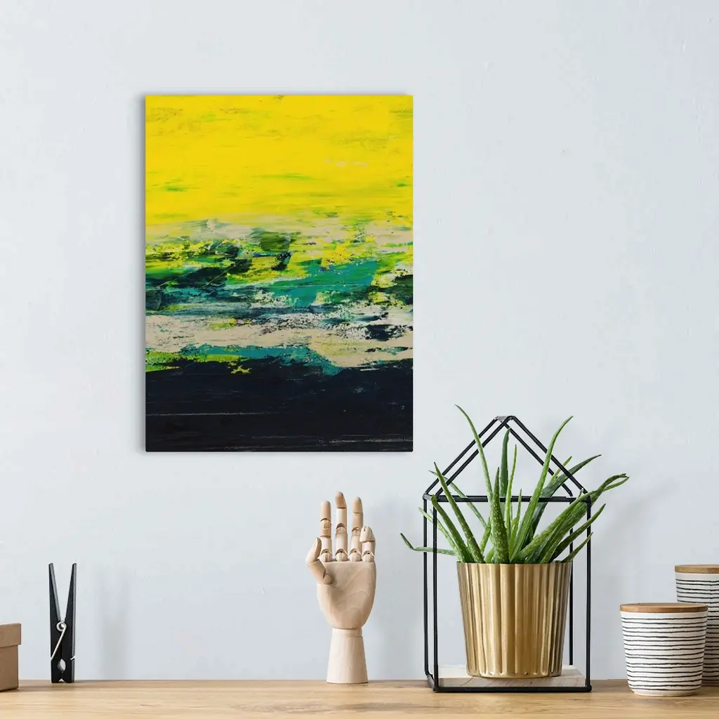 A contemporary abstract painting using wild vibrant colors and weathered and worn textures.