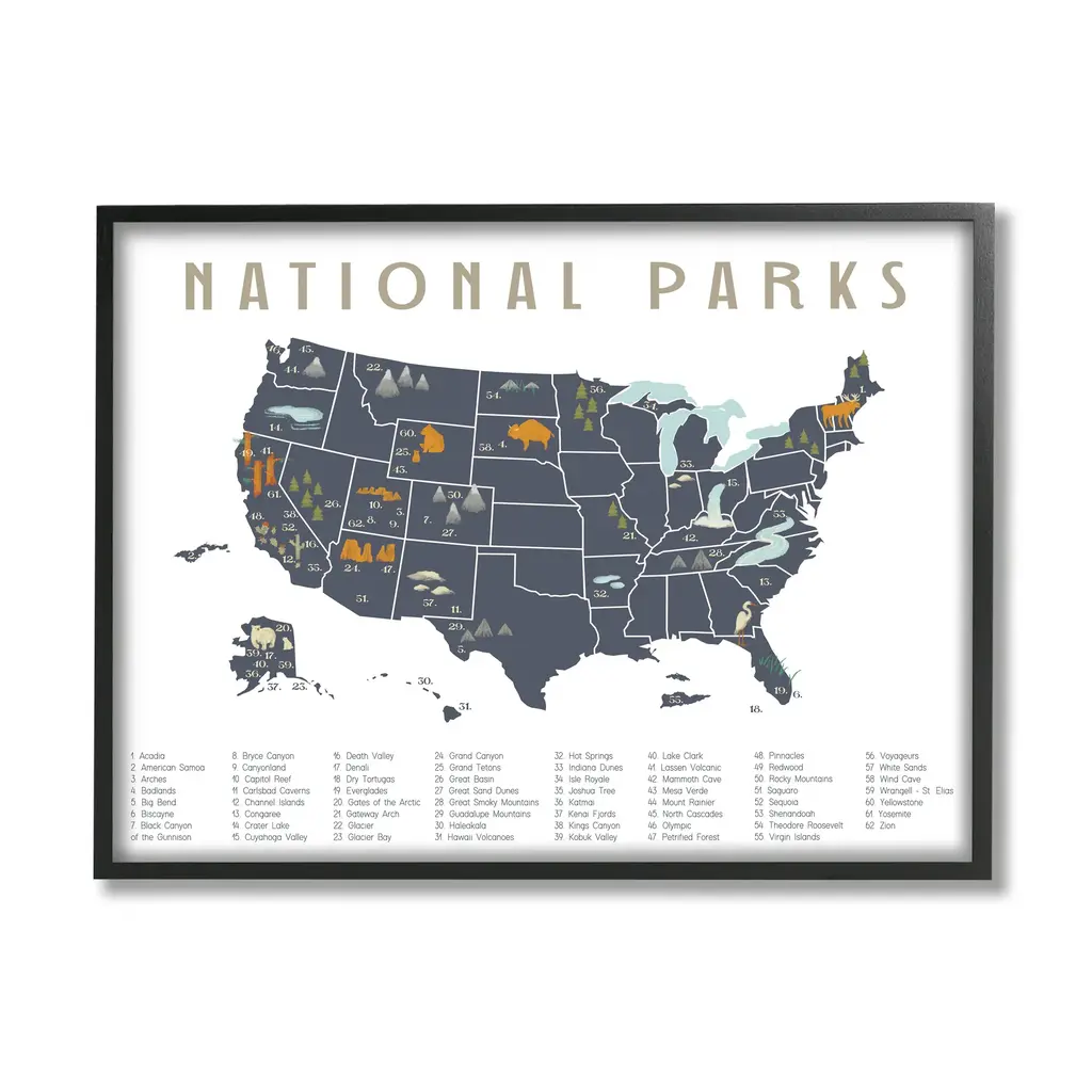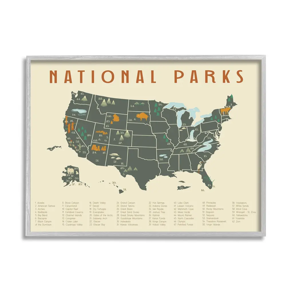 Us National Park Minimalist Checklist Art Print
