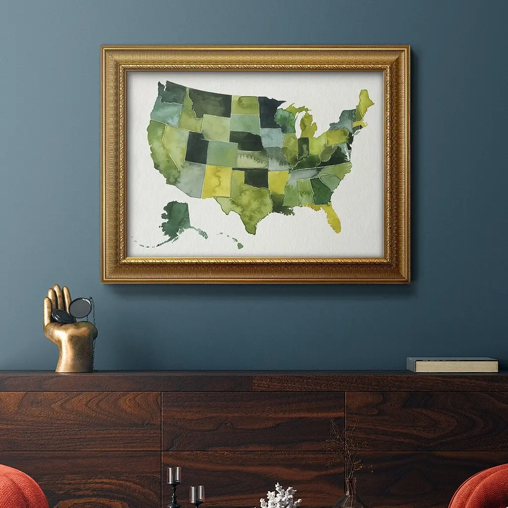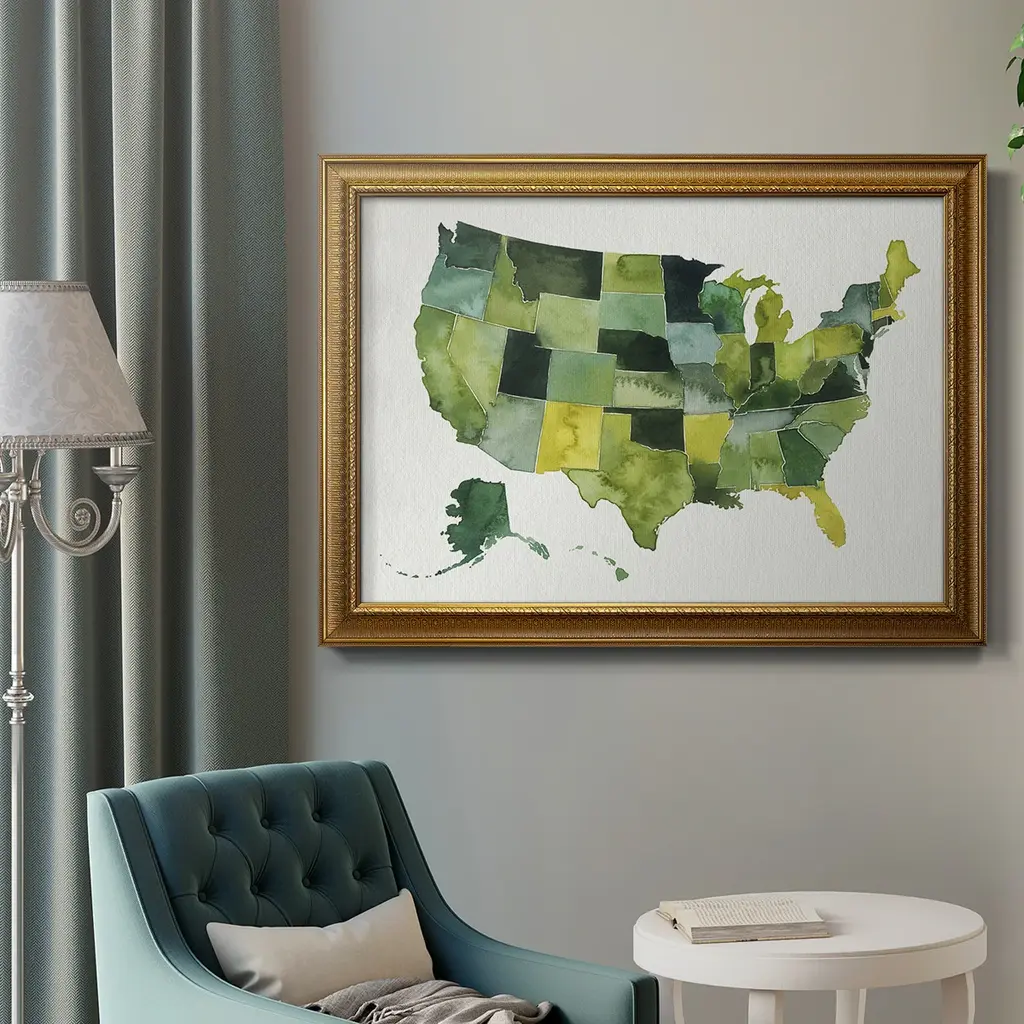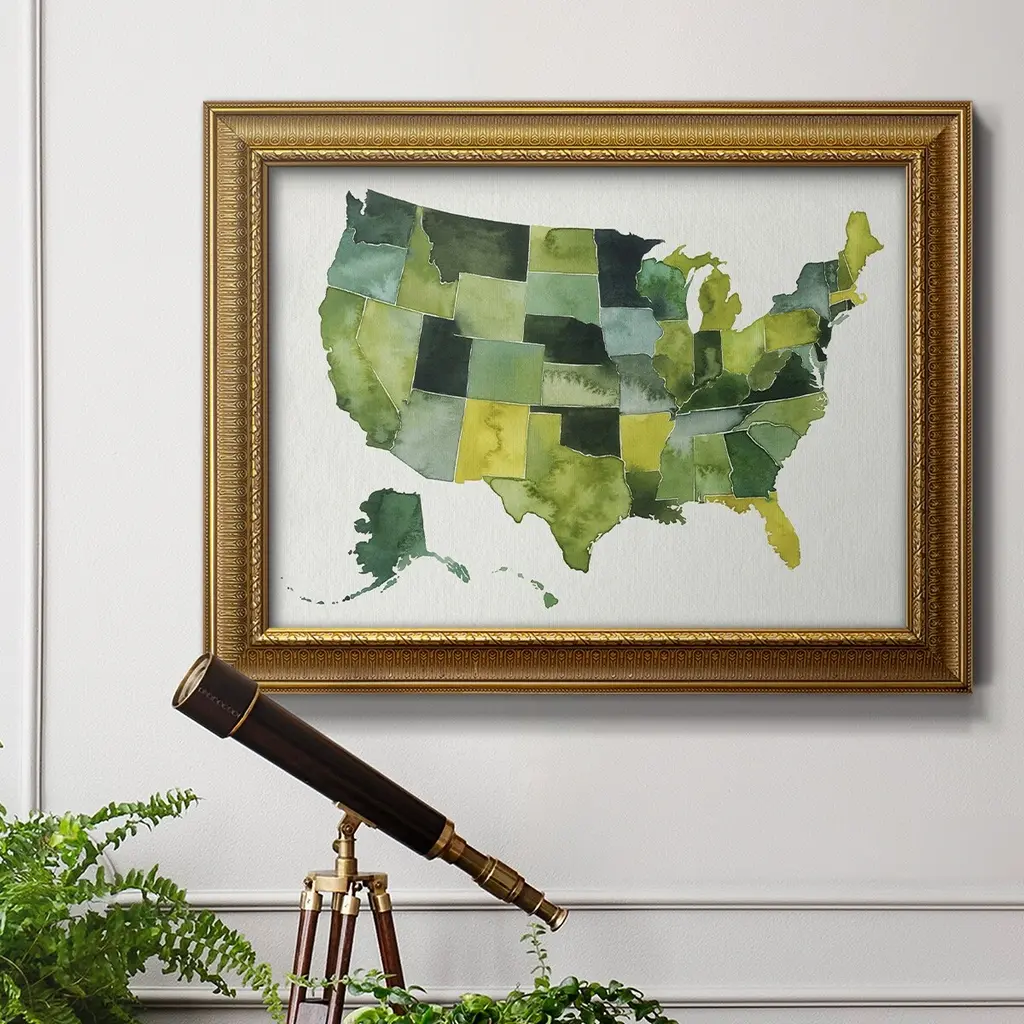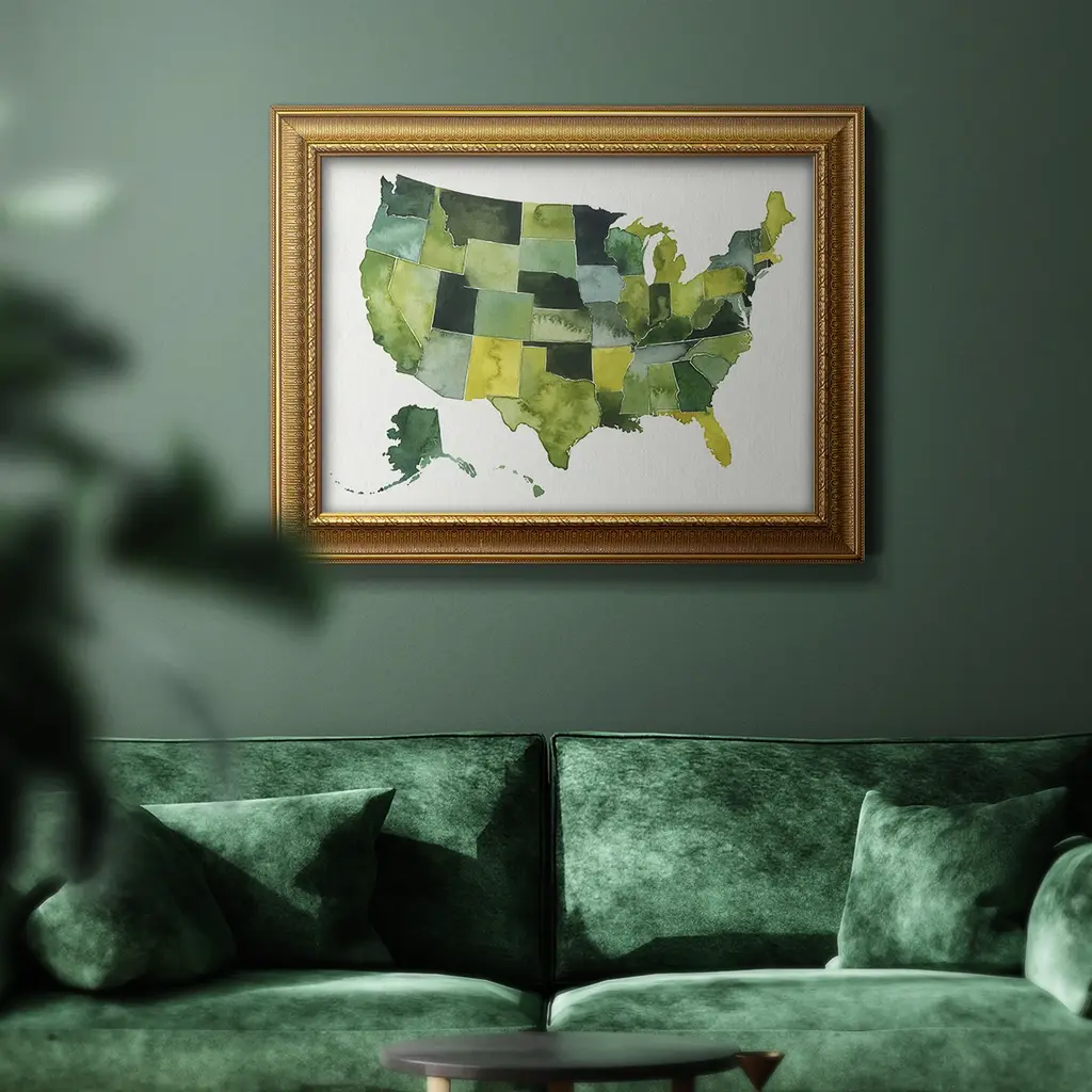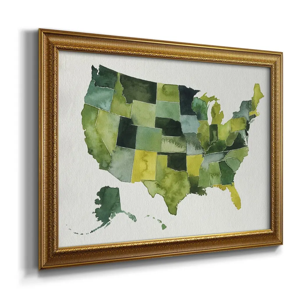 Usa In Watercolor I Premium Framed Canvas- Ready To Hang - 18x27 - Gold