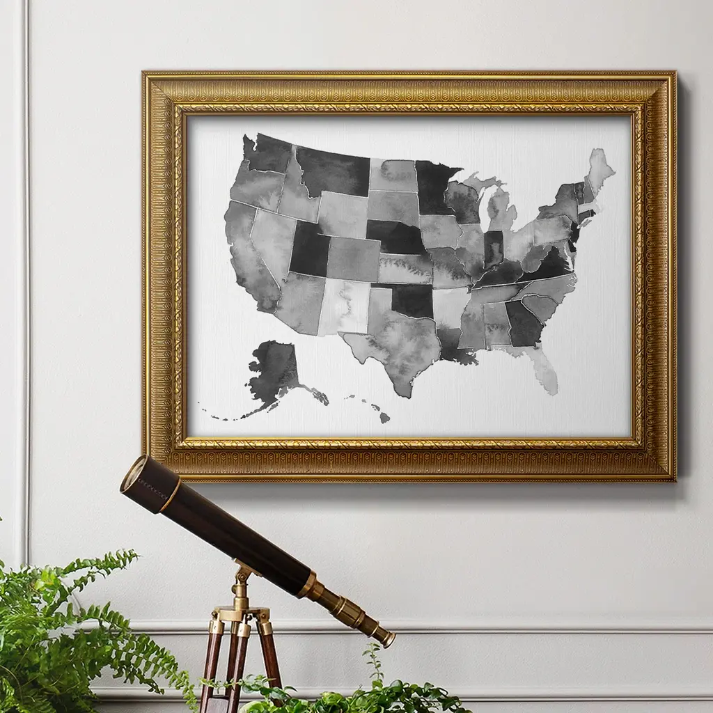 Usa In Watercolor Ii Premium Framed Canvas- Ready To Hang - 16x20 - Gold