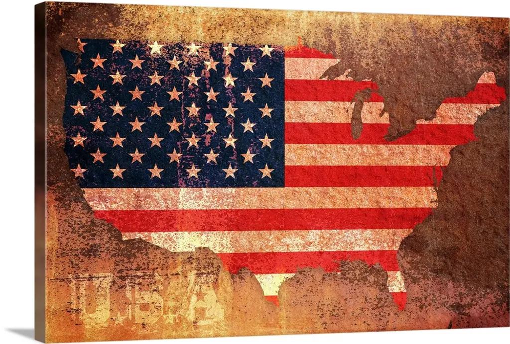 Usa "Melting Film" Flag (Bald Eagle)" By Icanvas, 40x26x1.5"