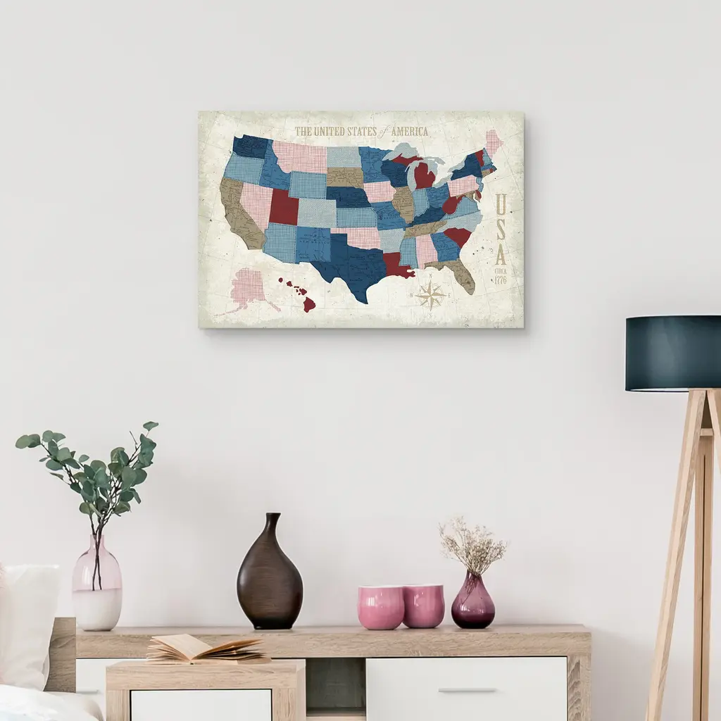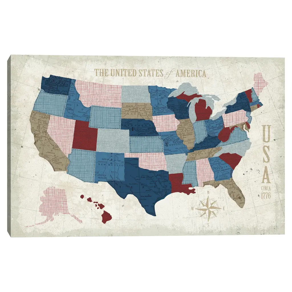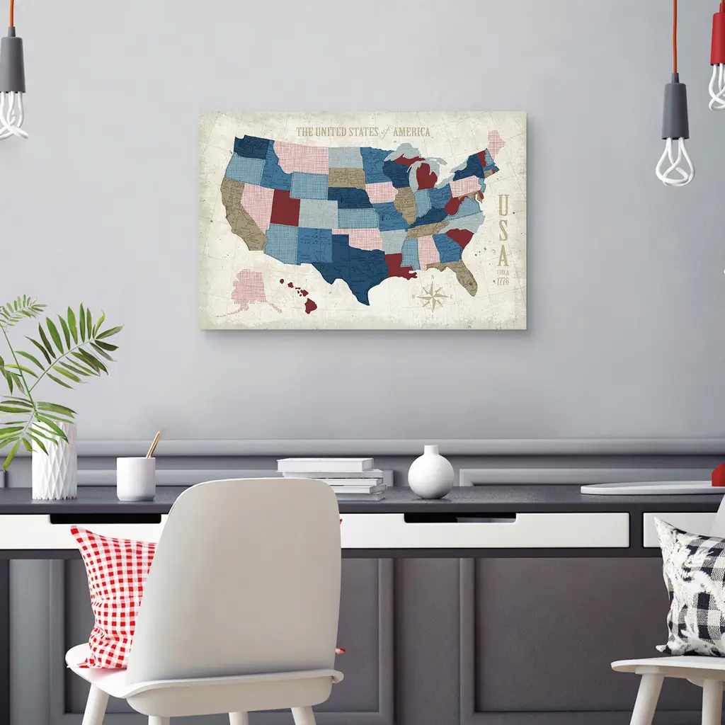 USA Modern Vintage Blue by Michael Mullan Canvas Art Print is produced with printing that covers the entirety of the canvas for a sleek and stylish museum-quality look. Our framed prints are made by expert craftsmen who strive to make each canvas the masterpiece