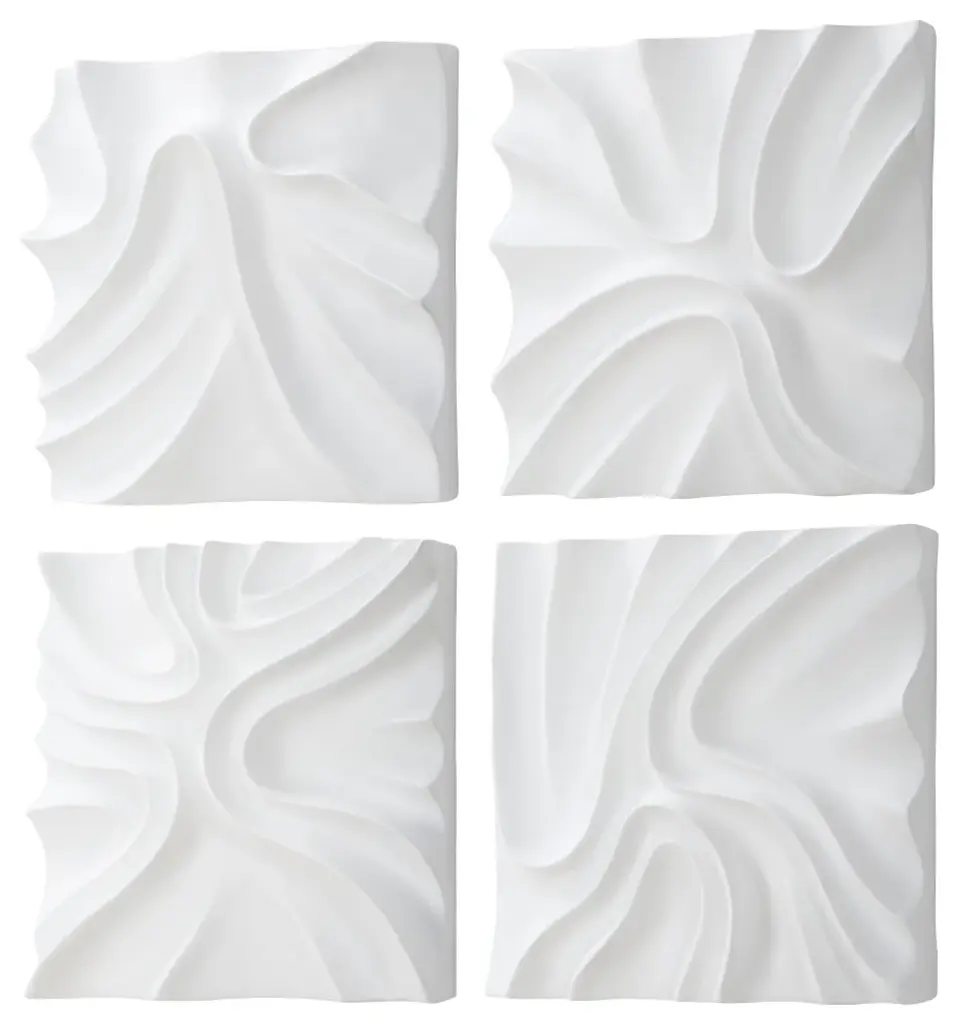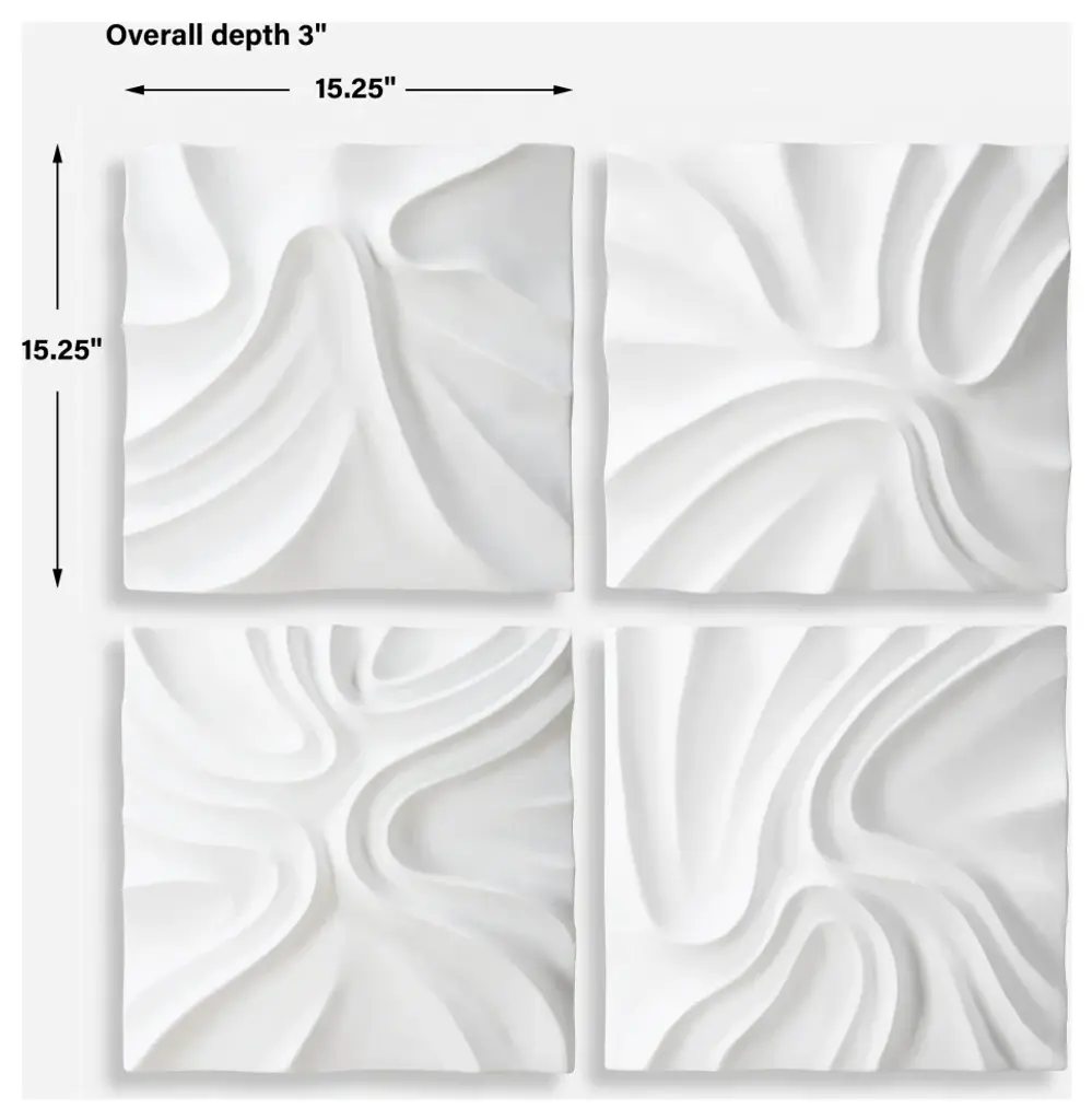 Three Dimensional Sculptural Wall Panels Crafted In Resin In Fresh White, Resembling Billowing Snow Drifts. Wall Decor, S/4 from the Snowdrift collection in White finishThree Dimensional Sculptural Wall Panels Crafted In Resin In Fresh White, Resembling Billowing Snow Drifts.Width: 15.25"Height: 15.25"Weight: 23.00 lb