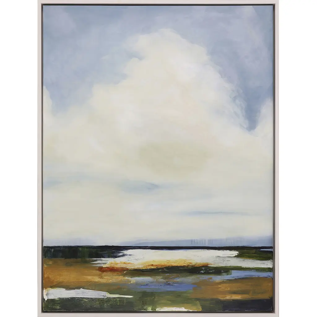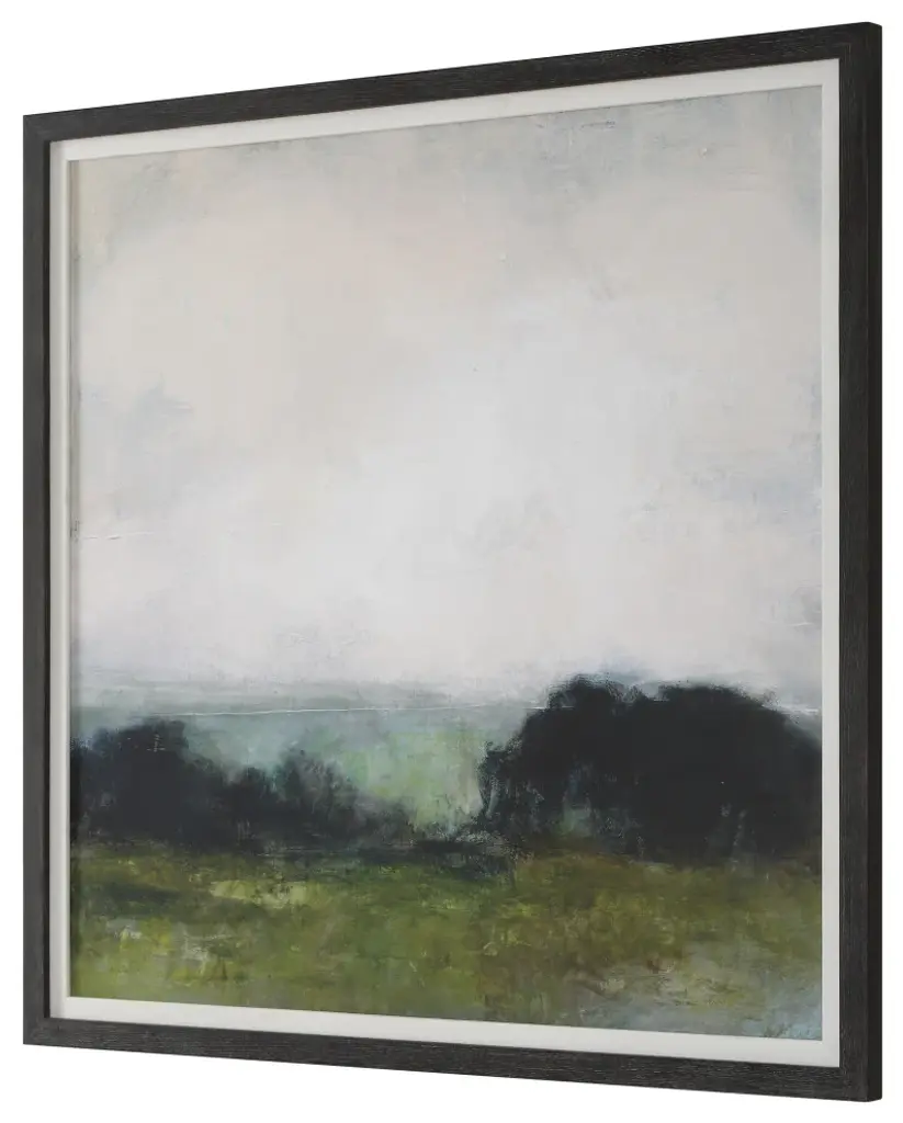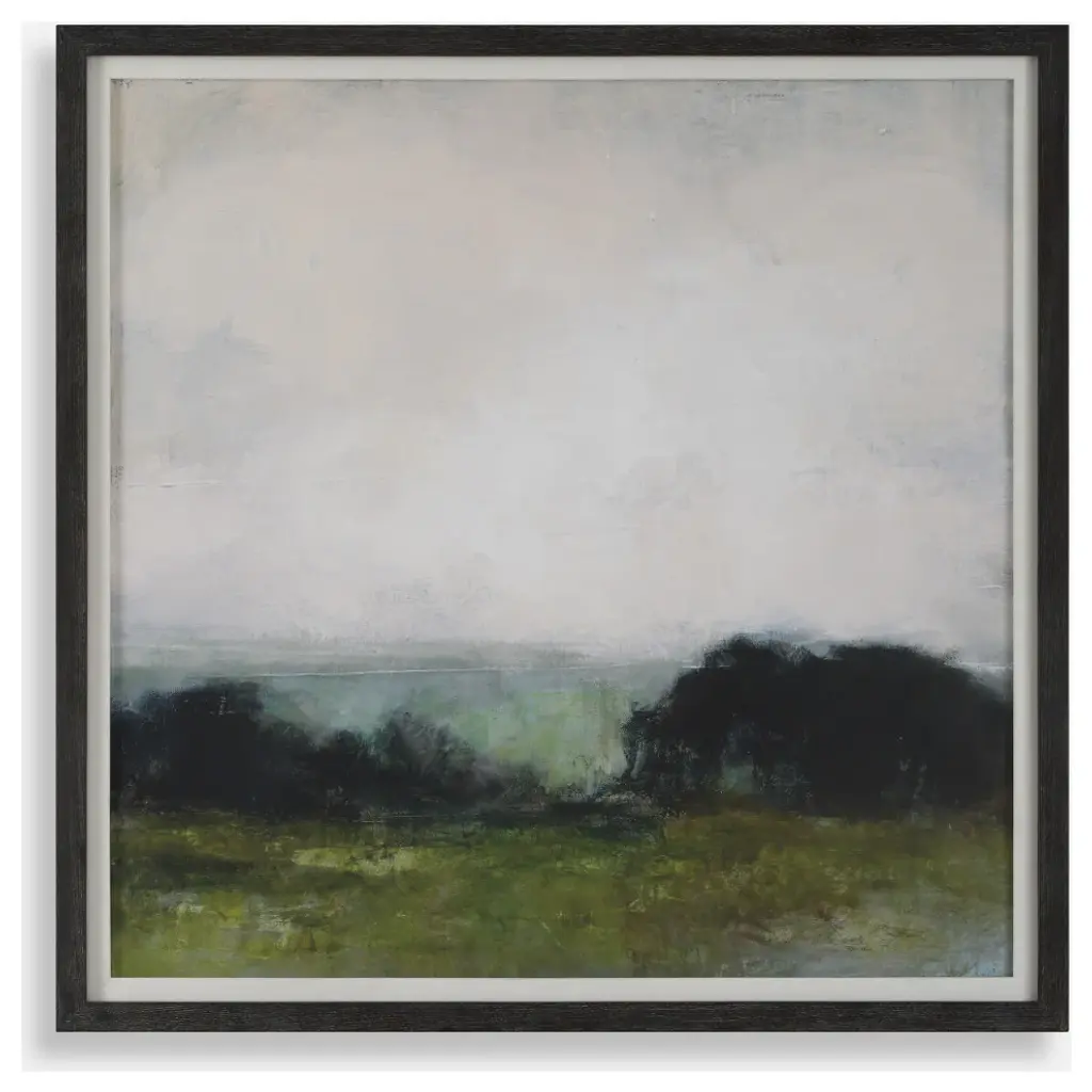 An Overcast Sky Dances Across Moody Shades Of Olive Green Earth And Shadow Black Trees. The First View Of The Water Framed Print Captures The Mysterious Beauty Of A Waterscape. Surrounded By A Black Wood Grain Frame Complimented With A White Linen Liner. Artwork By Julia Purinton. Framed Print from the First View collection in Black Wood finishAn Overcast Sky Dances Across Moody Shades Of Olive Green Earth And Shadow Black Trees. The First View Of The Water Framed Print Captures The Mysterious Beauty Of A Waterscape. Surrounded By A Black Wood Grain Frame Complimented With A White Linen Liner. Artwork By Julia Purinton.Width: 43.25"Height: 43.25"Weight: 17.00 lb