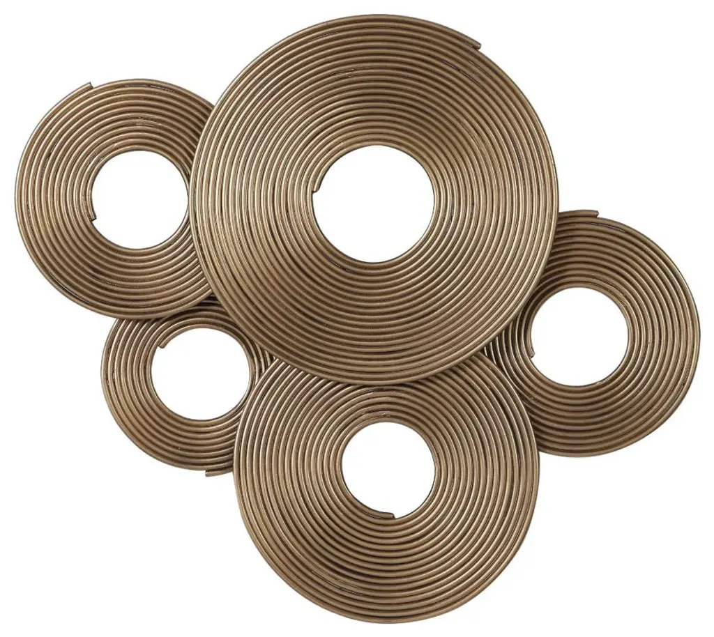 A 3-dimensional Layering Of Spiraled Iron Rings Featuring A Soft Gold Finish. May Be Hung Three Ways. Uttermost''s Wall Art Combines Premium Quality Materials With Unique High-style Design. With The Advanced Product Engineering And Packaging Reinforcement, Uttermost Maintains Some Of The Lowest Damage Rates In The Industry. Each Product Is Designed, Manufactured And Packaged With Shipping In Mind. DimensionsDepth: 2. 36 in. Width: 34. 65 in. Height: 27. 2 in.