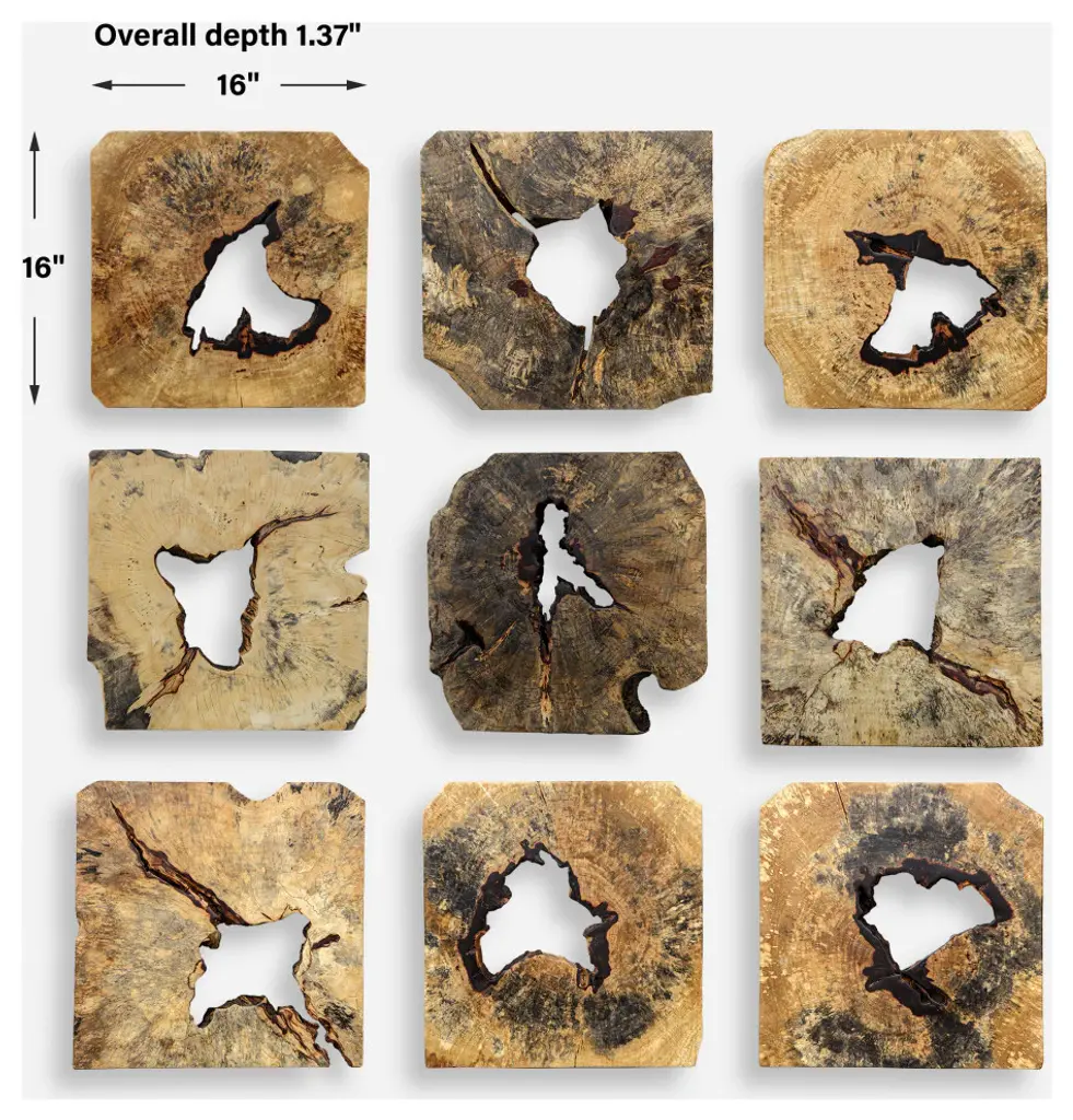 Uttermost Bahati Wood Wall Decor, S/9 - Natural