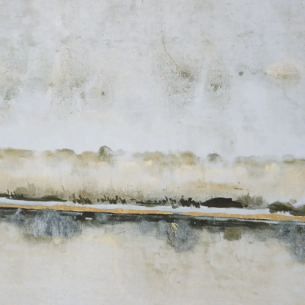 The Gilded Horizon framed print depicts an abstract landscape in a versatile neutral palette with gold leaf highlights. An antique gold leaf frame with a matte black inner liner accentuates the print. Artwork by Tim O'Toole. Uttermost's art combines premium quality materials with unique high-style design. With the advanced product engineering and packaging reinforcement, Uttermost maintains some of the lowest damage rates in the industry. Each product is designed, manufactured and packaged with shipping in mind. Features: Set includes: One (1) framed print Materials: Pine, Glass, MDF, Paper Finish: Antique gold leaf Designer: Grace Feyock Dimensions: Overall dimensions: 33 inches wide x 39 inches high x 1 inches deep Item weight: 12 lbs This product will ship to you in one (1) box.WARNING: This product can expose you to chemicals including titanium dioxide which is known to the State of California to cause cancer. For more information, go to www.P65Warnings.ca.gov/furniture.