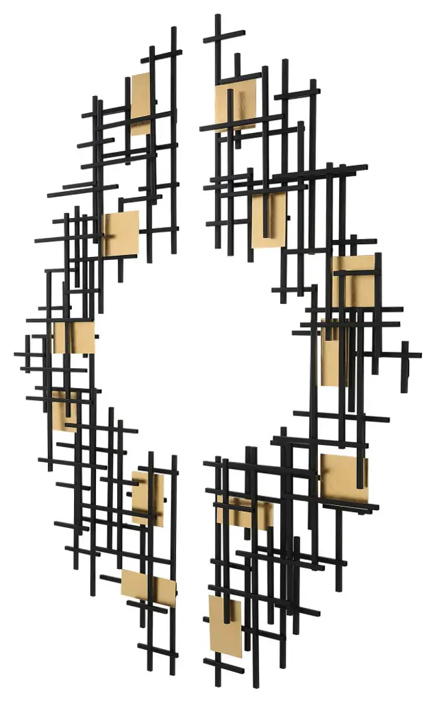 Set Of Two Contemporary Wall Pieces Display Overlapping Iron Grids Finished In Matte Black With Gold Leaf Accents. May Be Hung Horizontal Or Vertical.