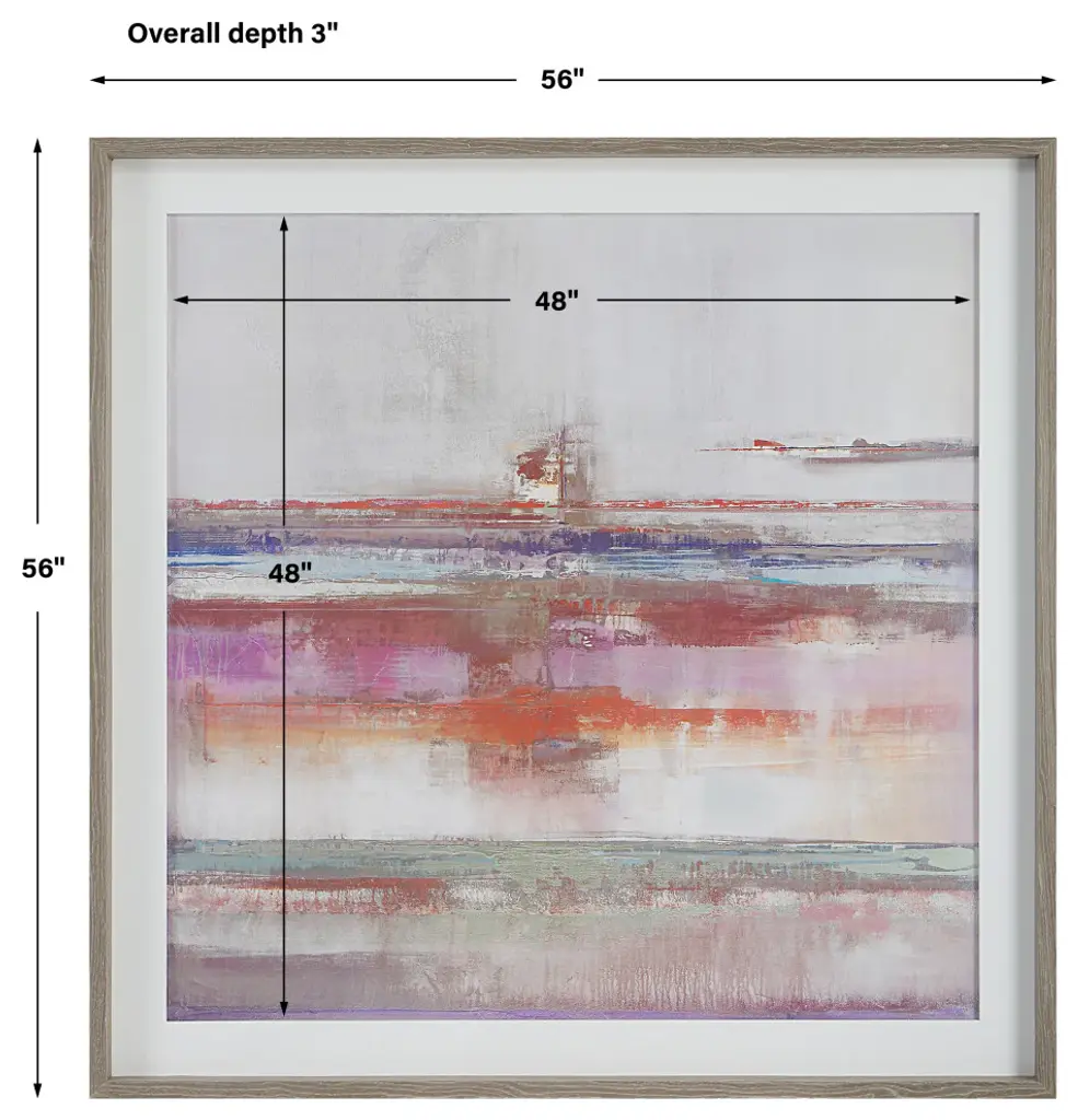 The Torrent Framed Artwork Encompasses A Striking Blend Of Bright And Neutral Tones In An Abstract Composition. The Solid Wood Frame Is Finished In A Natural Brushed Oak And Is Accented By A Considerable White Linen Inner Liner. Artwork By John Douglas. Uttermost''s Art Combines Premium Quality Materials With Unique High-style Design. With The Advanced Product Engineering And Packaging Reinforcement, Uttermost Maintains Some Of The Lowest Damage Rates In The Industry. Each Product Is Designed, Manufactured And Packaged With Shipping In Mind. DimensionsDepth: 3 in. Width: 56 in. Height: 56 in.