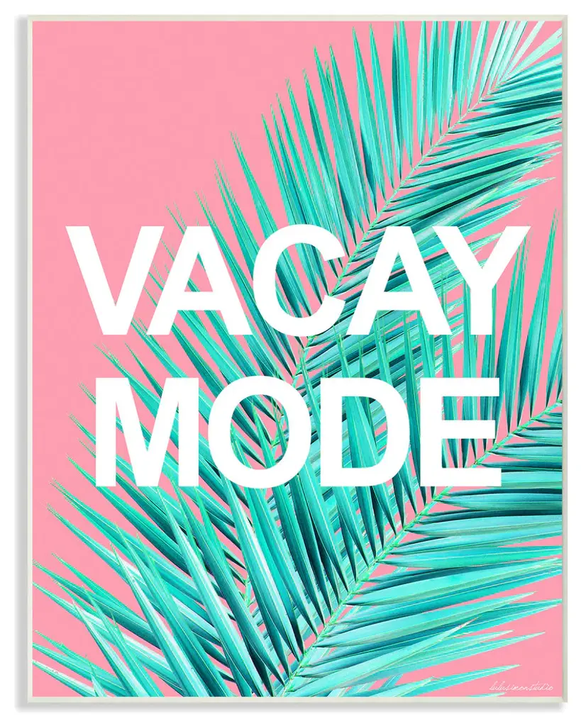 Vacay Mode Neon Palm Leaf Framed Giclee Texturized Art, 11x14