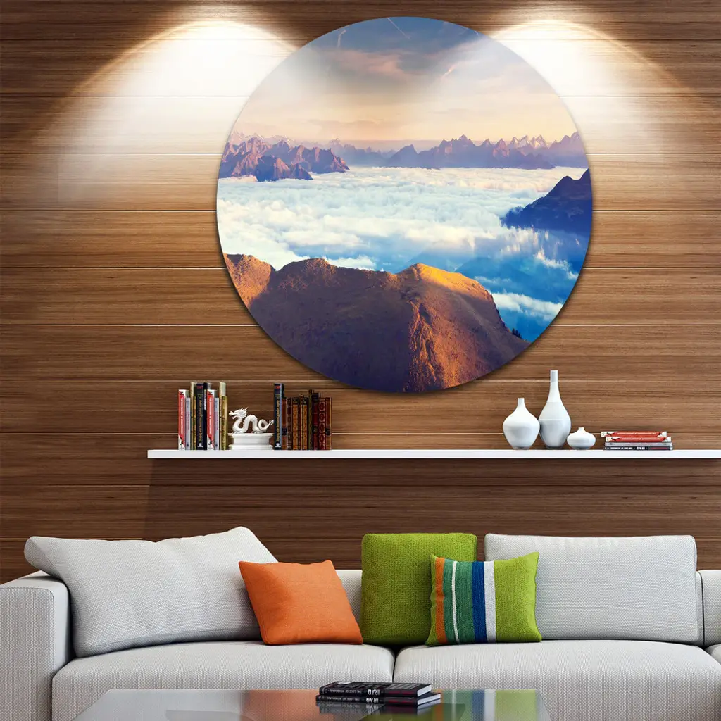 Bring Contemporary Abstraction to your home with this large Circle Metal wall art. This Val Gardena Valley Panorama Metal Artwork makes it the focal point of any room or office. - White Gloss Coating ensures colors are extra vibrant with light reflection.- Aluminum grade Sheet Metal with 1 inch mounting frame on the back giving the illusion that the artwork is floating on the wall..- Mounting Brackets are included along with instructions.- High Quality Digital images are created directly into a glossy aluminum panel producing a stunning and captivating print into the glossy finish of the metal.- Water, Fire and Scratch resistant HD Aluminum panels.- Looks better than any photo paper and guaranteed to last at least 20 years- Easy to clean with a microfiber cloth. Colors are far superior to regular Canvas Art. - Easy to Hang
