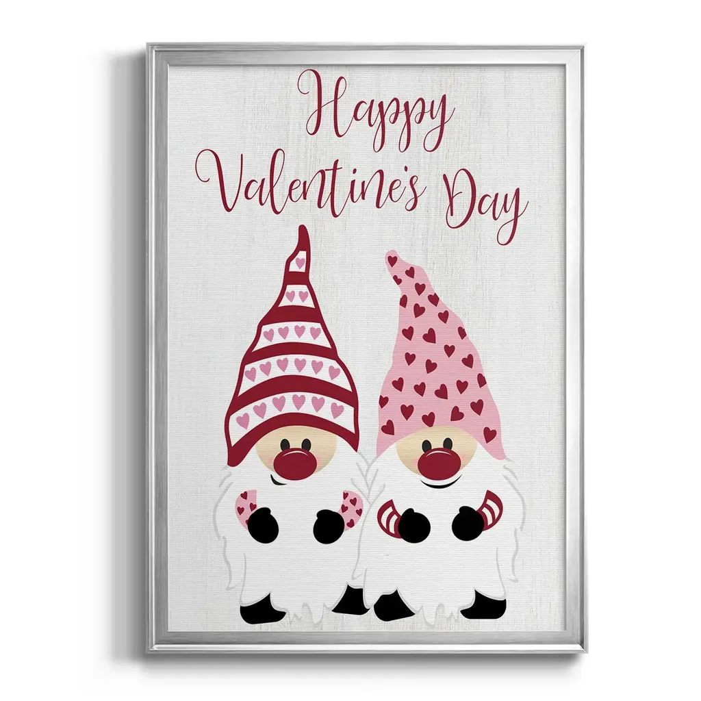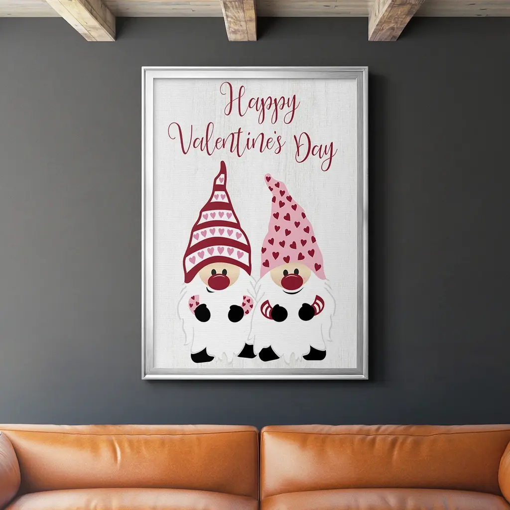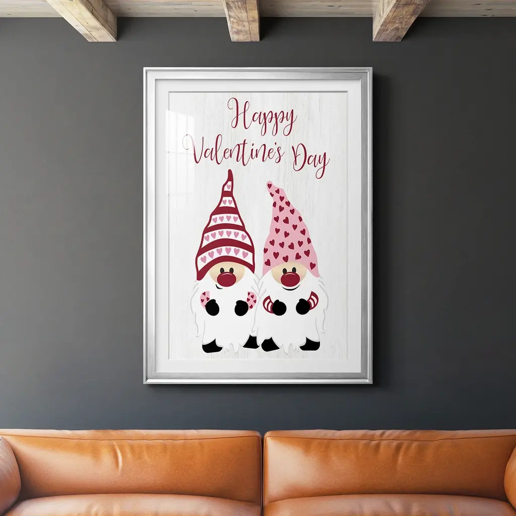 Valentines Gnomes Premium Framed Print - Ready to Hang A Premium Framed Print created to last. Framed in distressed wood and available in an array of sizes and colors Featuring a beveled a solid wood stretcher bar, each piece comes ready to hand 4 SIZES AVAILABLE 30.5''X42.5'' - Overall Size 26.5'X36.5'' - Overall Size 22.5''x30.5'' - Overall Size 18.5''x24.5'' - Overall Size Each piece is made to order. Each piece comes with hanging hardware. Made in the USA Ready to Hang
