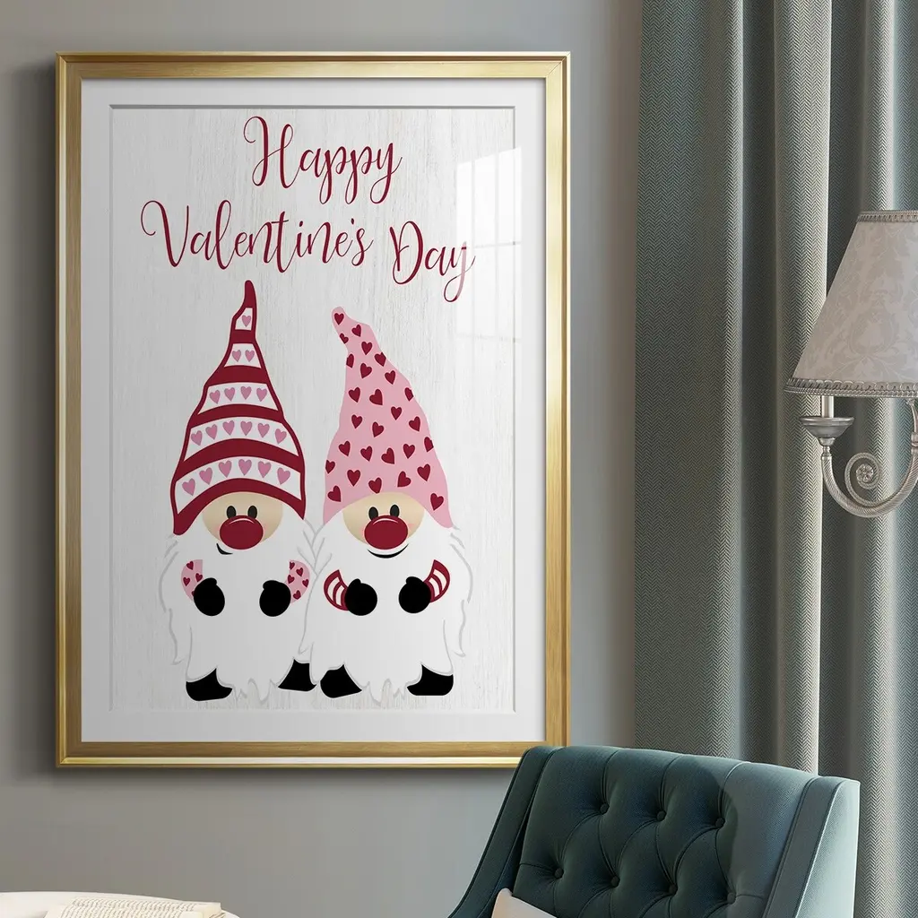 Valentines Gnomes Premium Framed Print - Ready to Hang A Premium Framed Print created to last. Framed in distressed wood and available in an array of sizes and colors Featuring a beveled a solid wood stretcher bar, each piece comes ready to hand 4 SIZES AVAILABLE 30.5''X42.5'' - Overall Size 26.5'X36.5'' - Overall Size 22.5''x30.5'' - Overall Size 18.5''x24.5'' - Overall Size Each piece is made to order. Each piece comes with hanging hardware. Made in the USA Ready to Hang Giclee Paper Print Acrylic Glass Beveled Matt Board