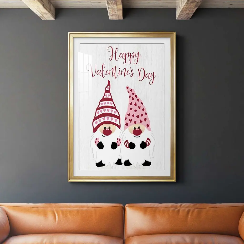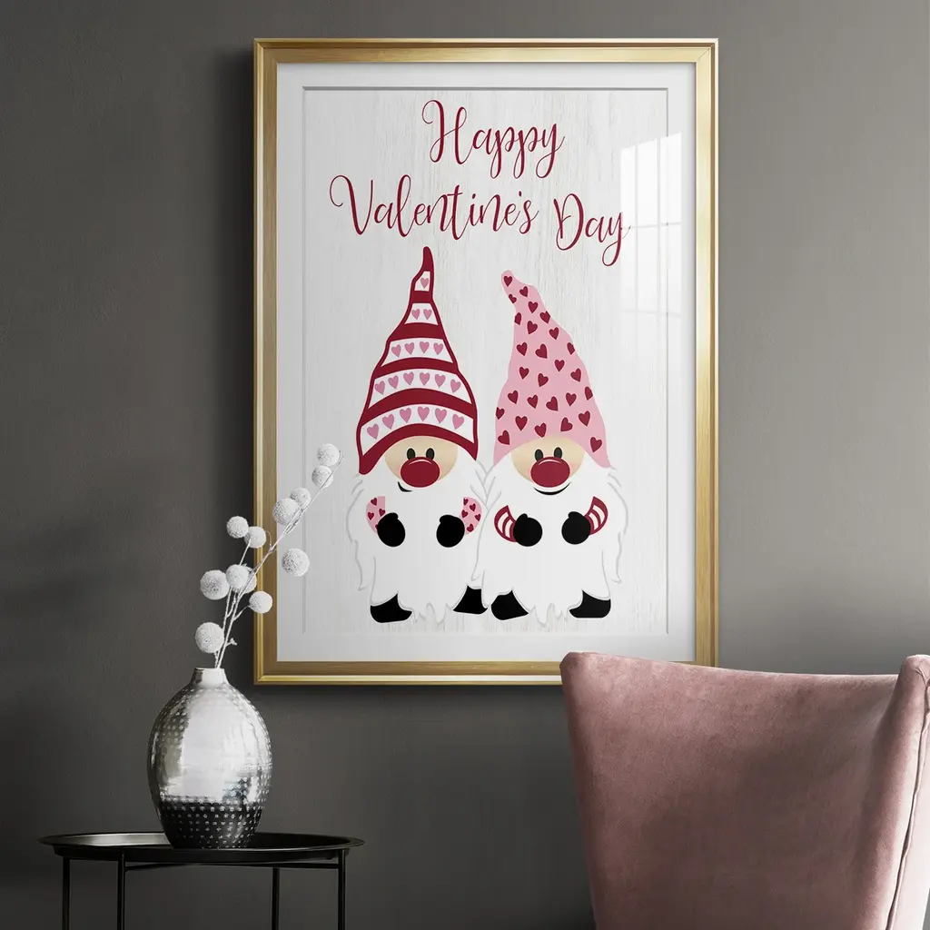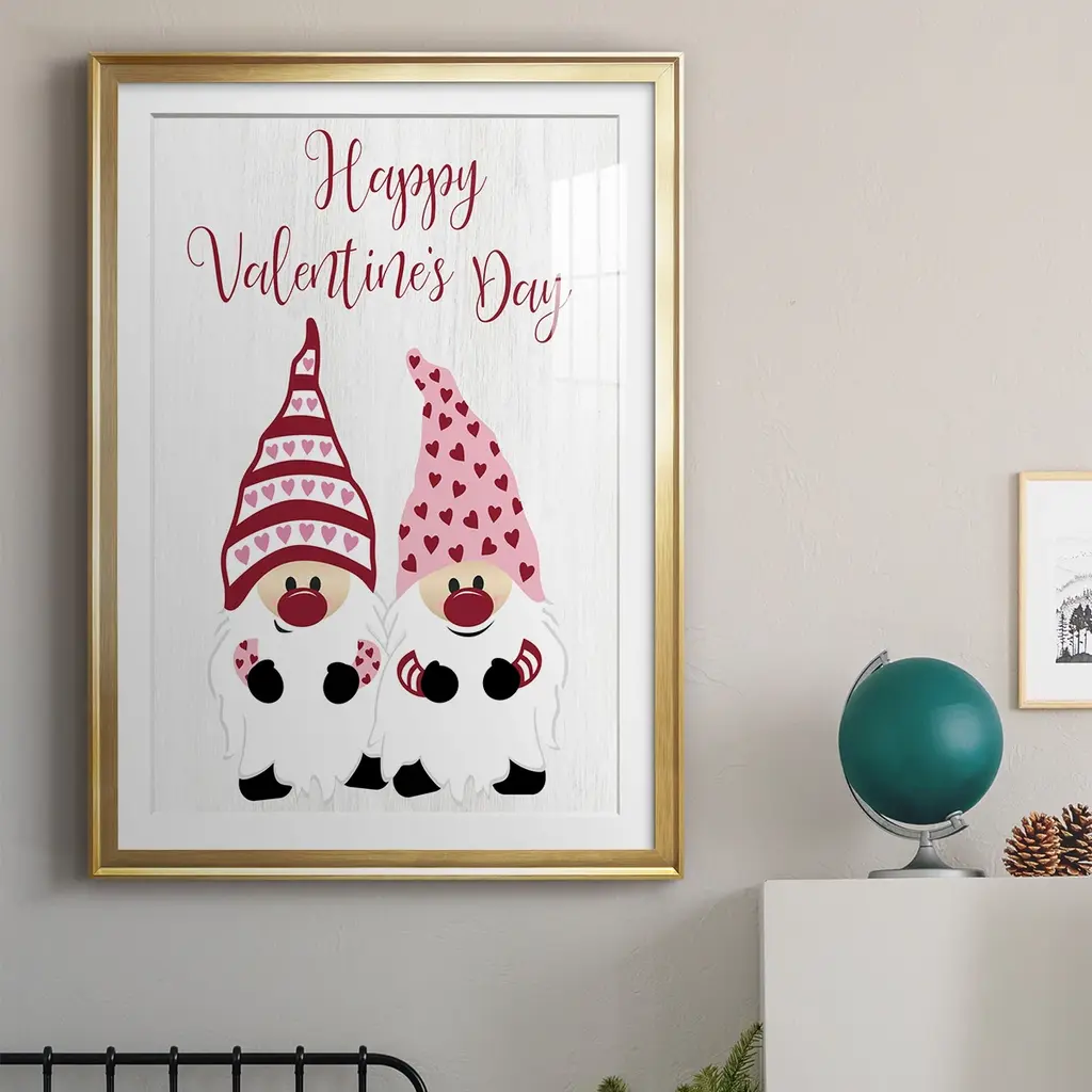 Valentines Gnomes Premium Framed Print - Ready to Hang A Premium Framed Print created to last. Framed in distressed wood and available in an array of sizes and colors Featuring a beveled a solid wood stretcher bar, each piece comes ready to hand 4 SIZES AVAILABLE 30.5''X42.5'' - Overall Size 26.5'X36.5'' - Overall Size 22.5''x30.5'' - Overall Size 18.5''x24.5'' - Overall Size Each piece is made to order. Each piece comes with hanging hardware. Made in the USA Ready to Hang Giclee Paper Print Acrylic Glass Beveled Matt Board
