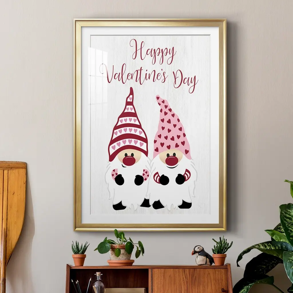 Valentines Gnomes Premium Framed Print - Ready to Hang A Premium Framed Print created to last. Framed in distressed wood and available in an array of sizes and colors Featuring a beveled a solid wood stretcher bar, each piece comes ready to hand 4 SIZES AVAILABLE 30.5''X42.5'' - Overall Size 26.5'X36.5'' - Overall Size 22.5''x30.5'' - Overall Size 18.5''x24.5'' - Overall Size Each piece is made to order. Each piece comes with hanging hardware. Made in the USA Ready to Hang Giclee Paper Print Acrylic Glass Beveled Matt Board
