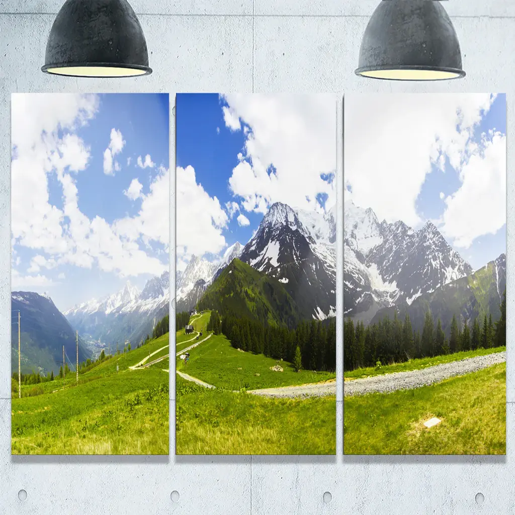 "Valley In French Alps Panorama" Metal Wall Art, 3 Panels, 36"x28"