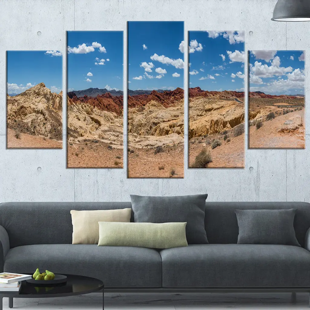 "Valley Of Fire Landscape Panorama" Landscape Wall Wall Art, 5 Panels, 60"x32"