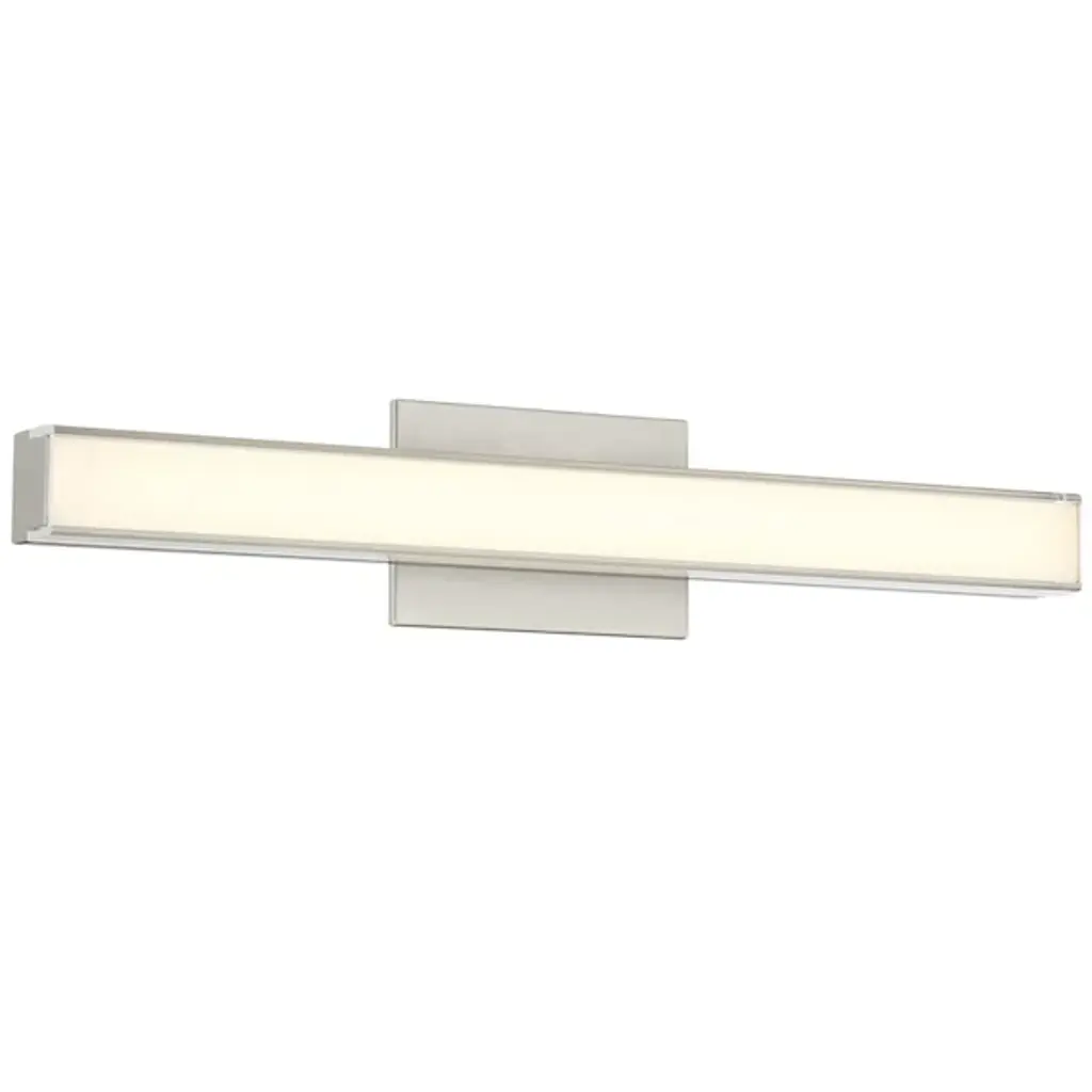 The Vantage LED Vanity Lighting from Minka-Lavery introduces a sleek, contemporary style to your bathroom or dressing area. Constructed from durable steel and aluminum, this fixture features an acrylic glass shade that evenly diffuses light, creating a bright yet gentle ambiance ideal for grooming tasks. Designed with energy-efficient LED technology, it combines modern aesthetics with functionality, making it a perfect choice for adding a refined, minimalist touch to any contemporary space while providing optimal lighting.