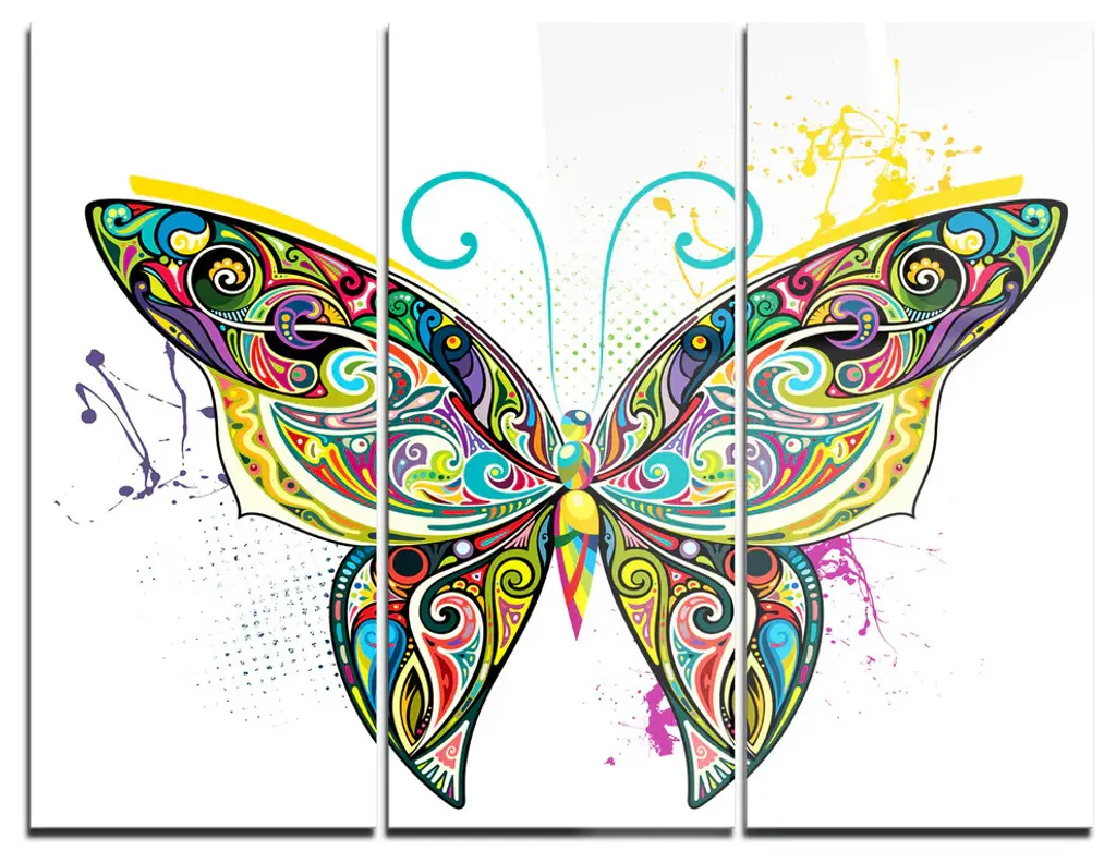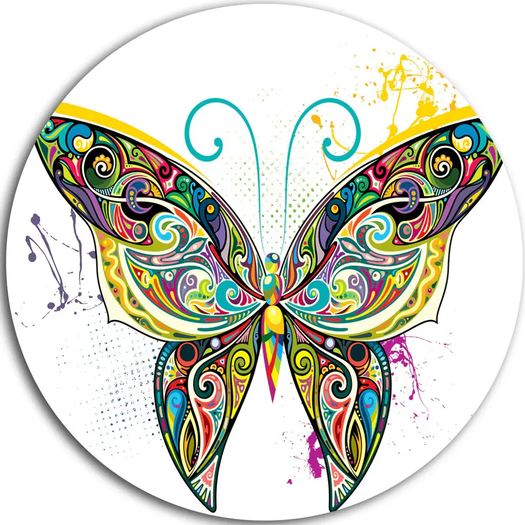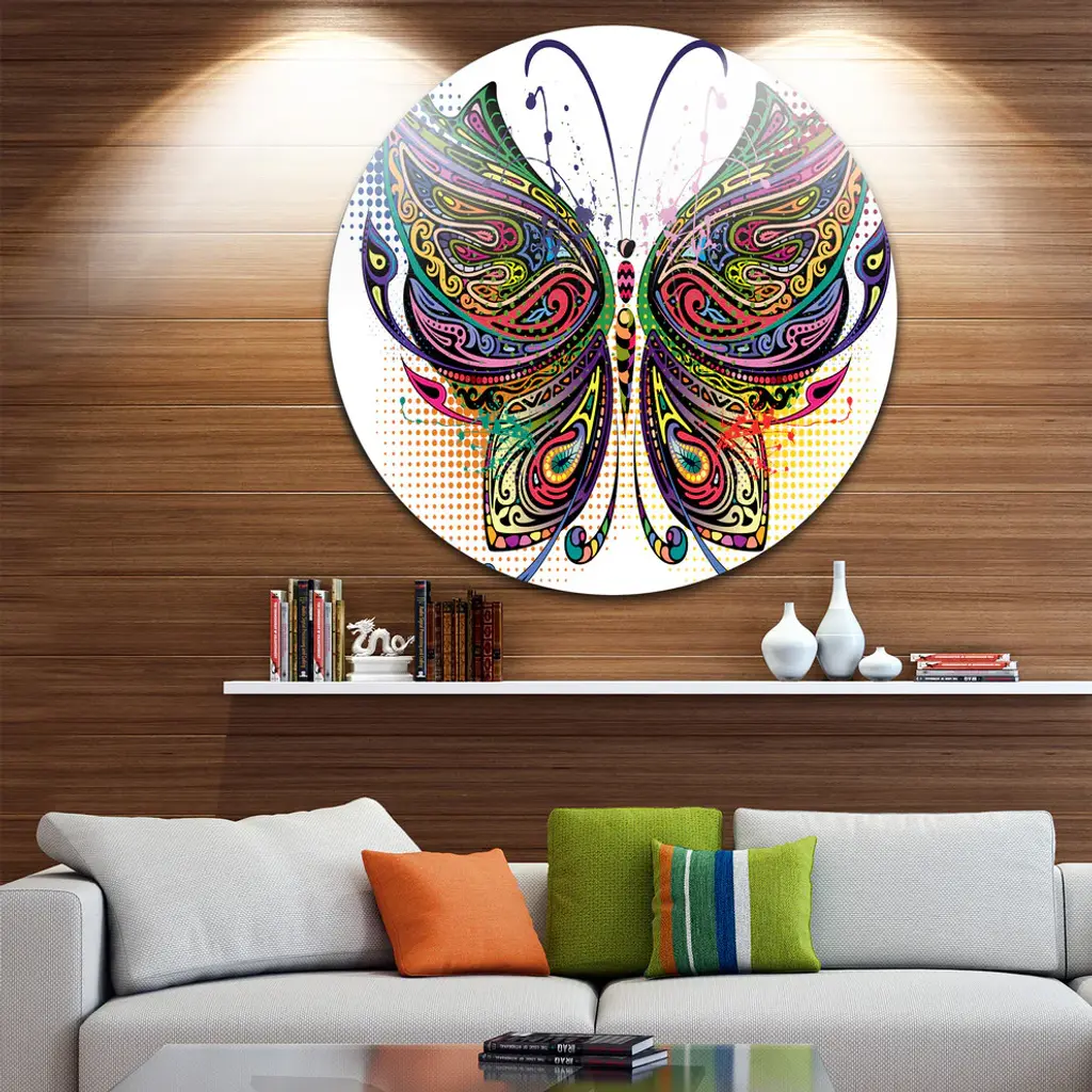 Bring Contemporary Abstraction to your home with this large Circle Metal wall art. This Variegated Butterfly Metal Artwork makes it the focal point of any room or office. - White Gloss Coating ensures colors are extra vibrant with light reflection.- Aluminum grade Sheet Metal with 1 inch mounting frame on the back giving the illusion that the artwork is floating on the wall..- Mounting Brackets are included along with instructions.- High Quality Digital images are created directly into a glossy aluminum panel producing a stunning and captivating print into the glossy finish of the metal.- Water, Fire and Scratch resistant HD Aluminum panels.- Looks better than any photo paper and guaranteed to last at least 20 years- Easy to clean with a microfiber cloth. Colors are far superior to regular Canvas Art. - Easy to Hang