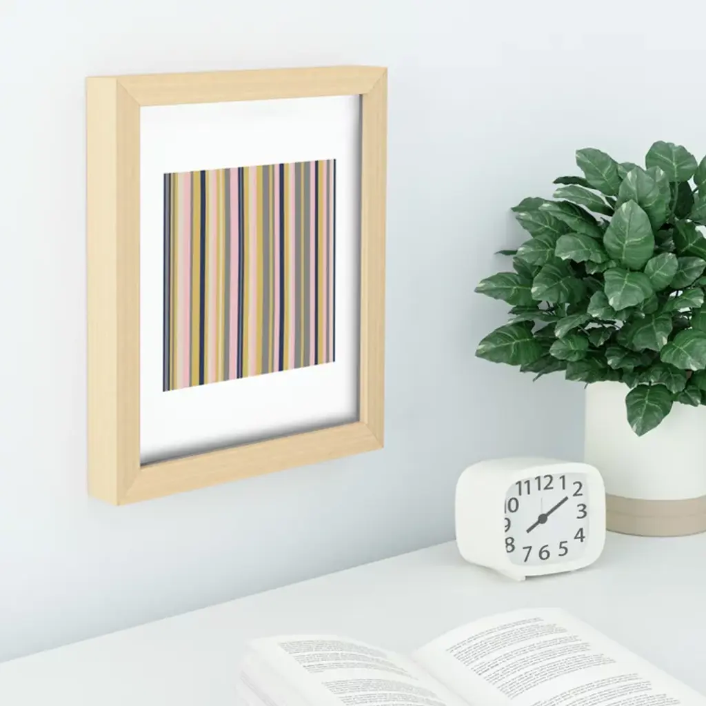 Variegated Thin Stripes Pattern In Mustard Yellow, Gray, Navy Blue, And Pink Art Print