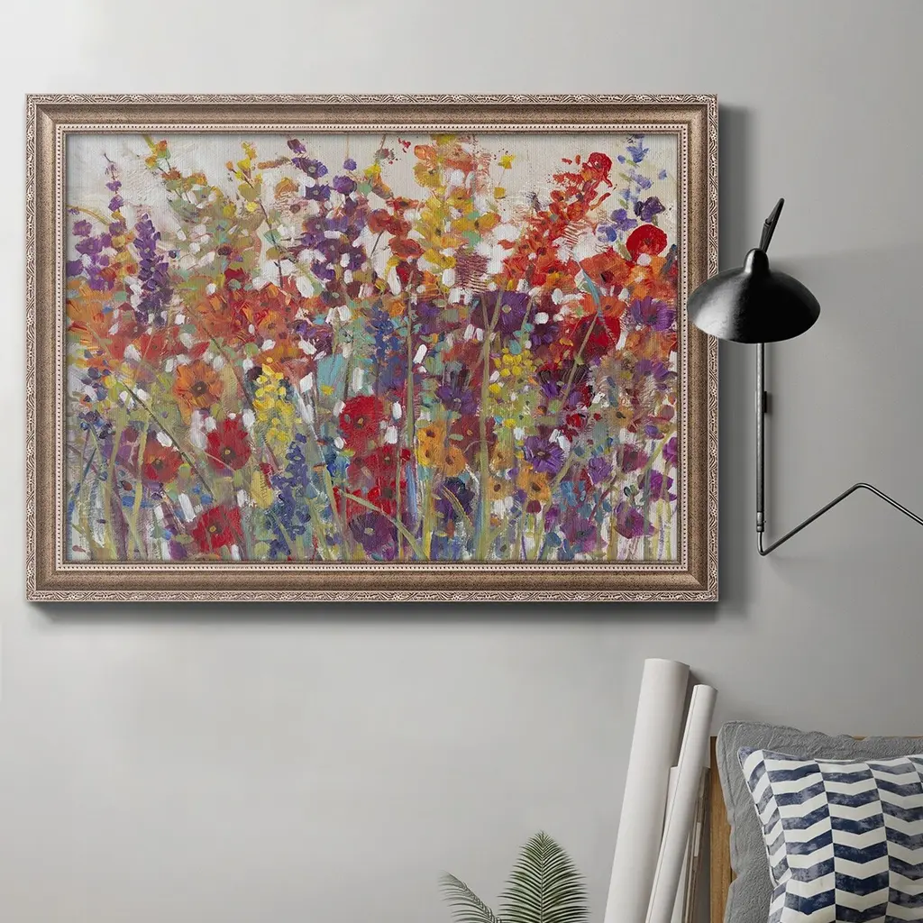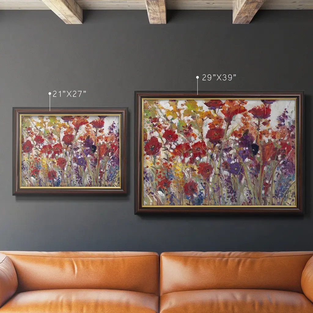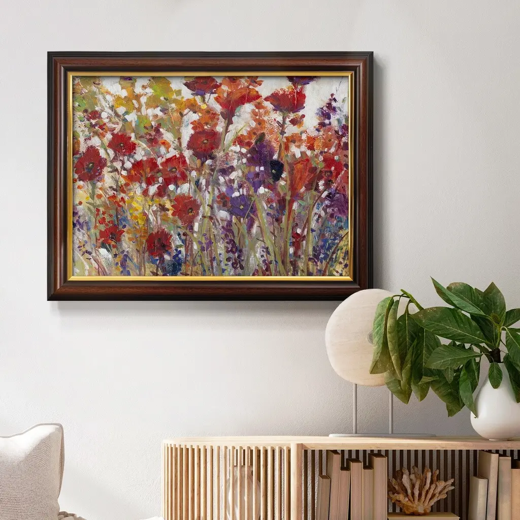Variety of Flowers I Premium Framed Canvas- Ready to Hang A Premium Framed Canvas created to last. Framed in distressed wood and available in an array of sizes and colors Featuring a beveled a solid wood stretcher bar, each piece comes ready to hand 3 SIZES AVAILABLE 16''X20'' - Overall Size 18'X27'' - Overall Size 24''x36'' - Overall Size Each piece is made to order. Each piece comes with hanging hardware. Made in the USA Ready to Hang Giclee Paper Print Acrylic Glass Beveled Matt Board