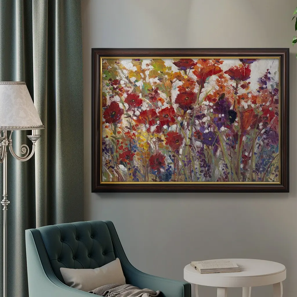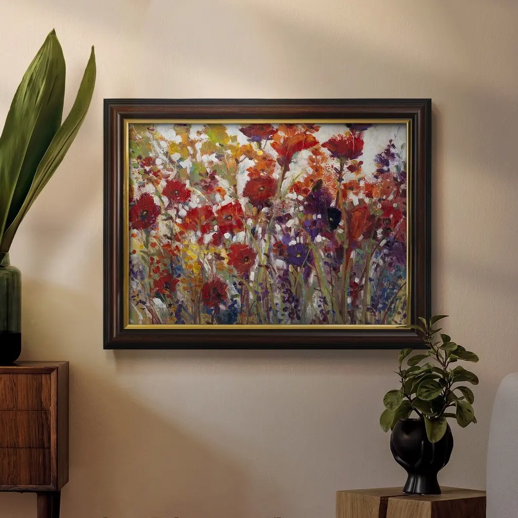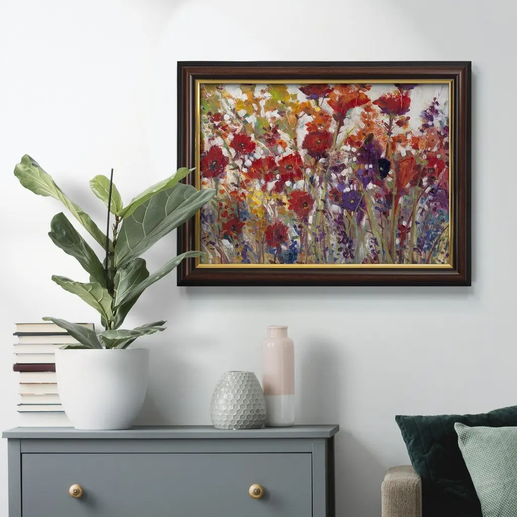 Variety of Flowers I Premium Framed Canvas- Ready to Hang A Premium Framed Canvas created to last. Framed in distressed wood and available in an array of sizes and colors Featuring a beveled a solid wood stretcher bar, each piece comes ready to hand 3 SIZES AVAILABLE 16''X20'' - Overall Size 18'X27'' - Overall Size 24''x36'' - Overall Size Each piece is made to order. Each piece comes with hanging hardware. Made in the USA Ready to Hang Giclee Paper Print Acrylic Glass Beveled Matt Board