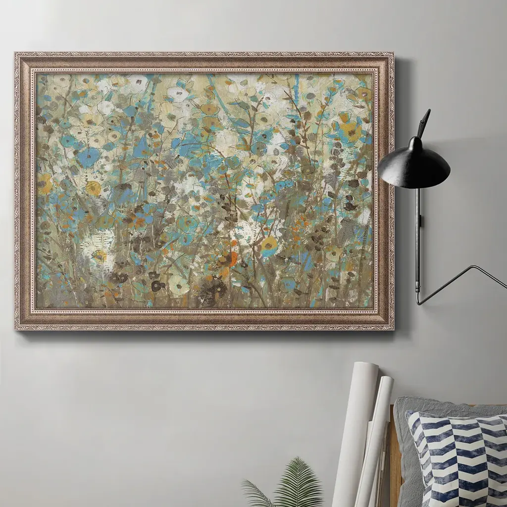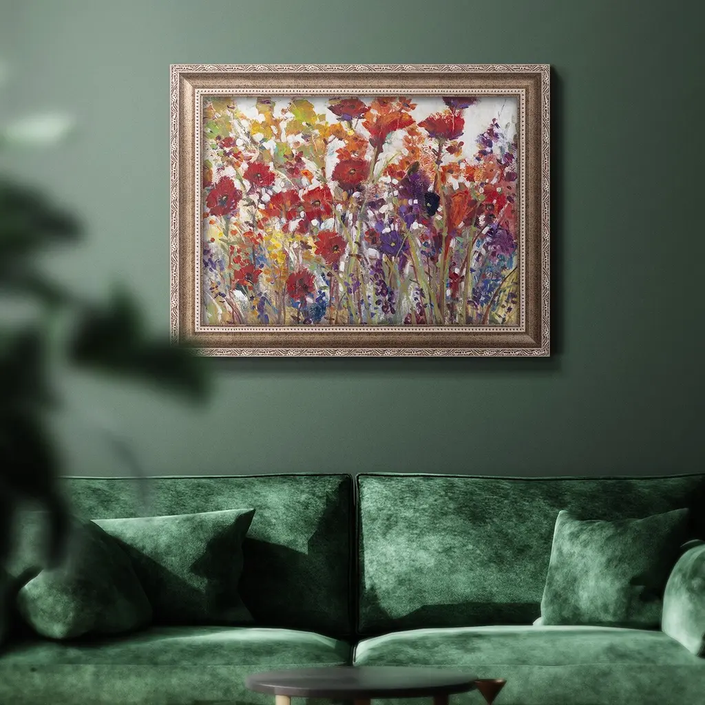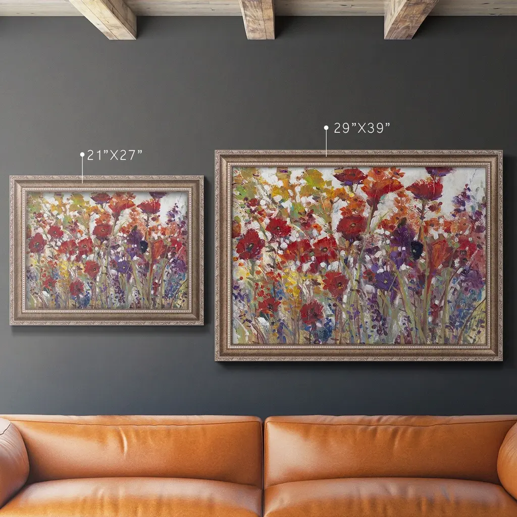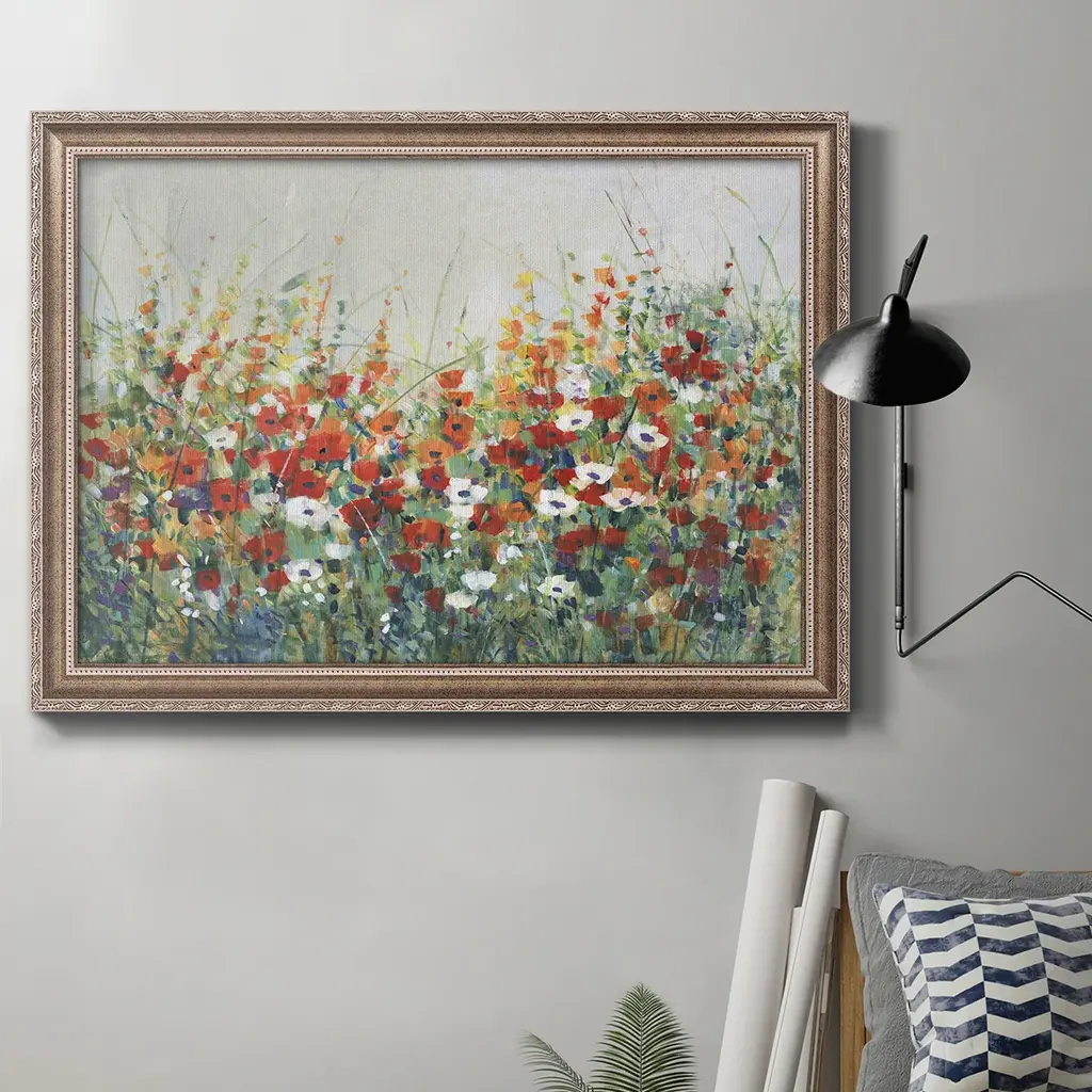 Variety of Flowers I Premium Framed Canvas- Ready to Hang A Premium Framed Canvas created to last. Framed in distressed wood and available in an array of sizes and colors Featuring a beveled a solid wood stretcher bar, each piece comes ready to hand 3 SIZES AVAILABLE 16''X20'' - Overall Size 18'X27'' - Overall Size 24''x36'' - Overall Size Each piece is made to order. Each piece comes with hanging hardware. Made in the USA Ready to Hang Giclee Paper Print Acrylic Glass Beveled Matt Board