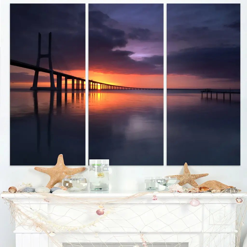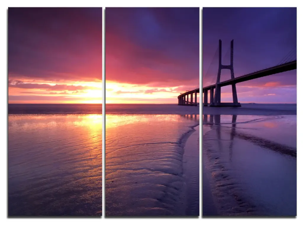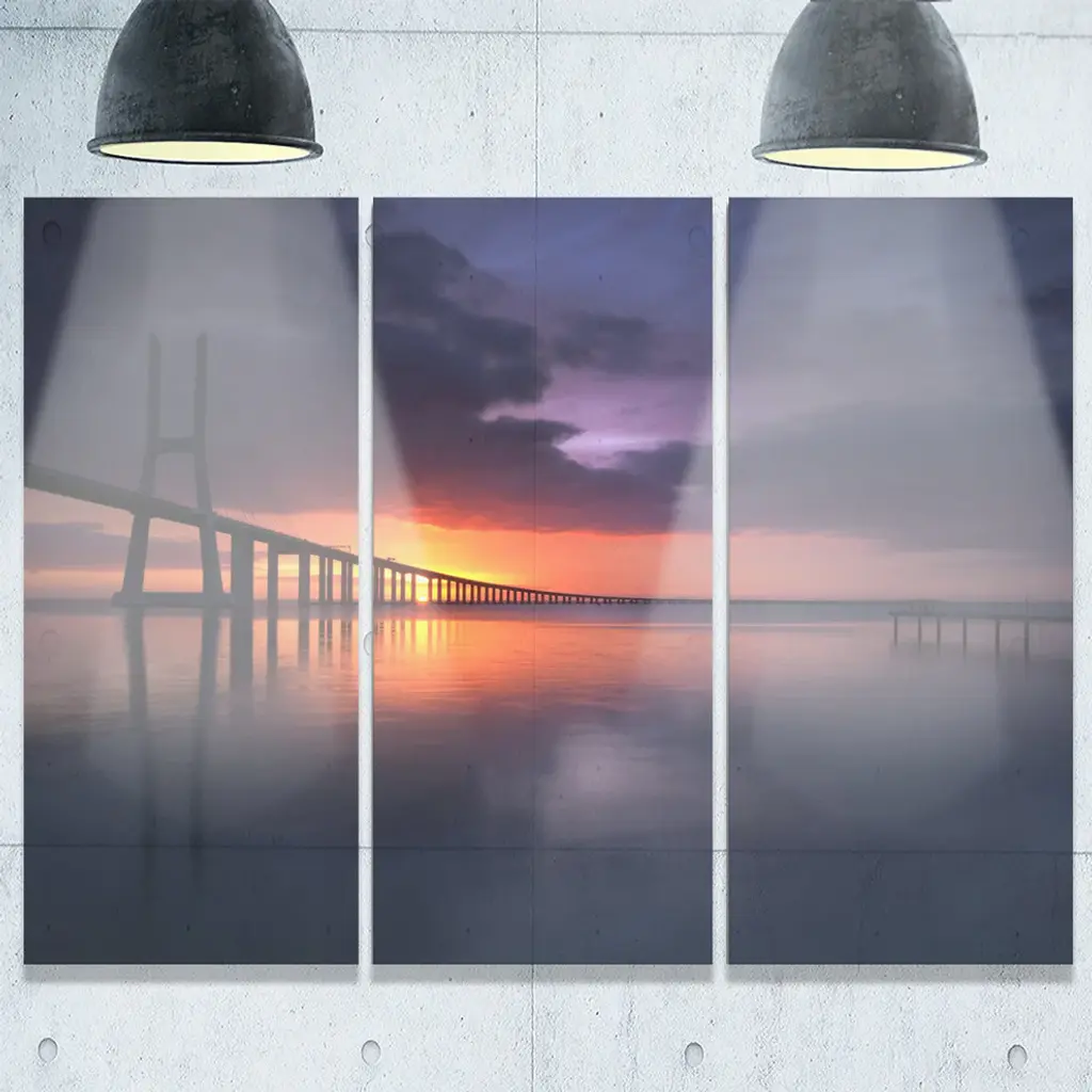 "Vasco Da Gama Bridge Portugal" Metal Wall Art, 3 Panels, 36"x28"