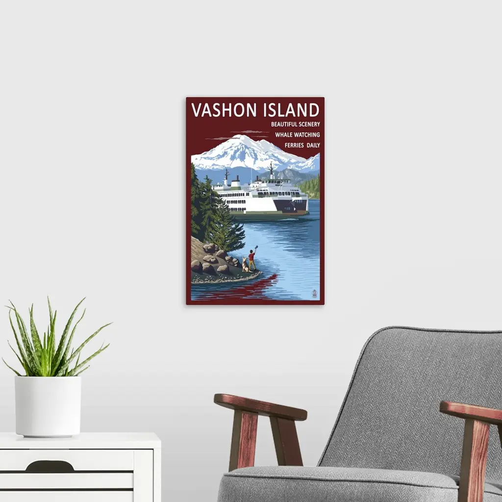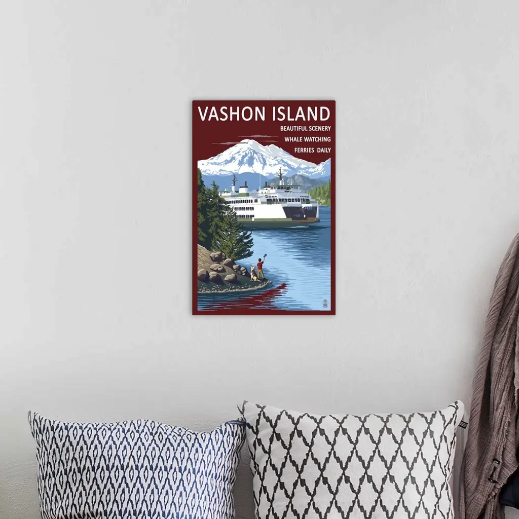 Vashon Island, Washington - Ferry Scene: Retro Travel Poster wall art for home and office decor. Discover canvas art prints, photos, mural, big canvas art and framed wall art in GreatBigCanvas.com's varied collections.