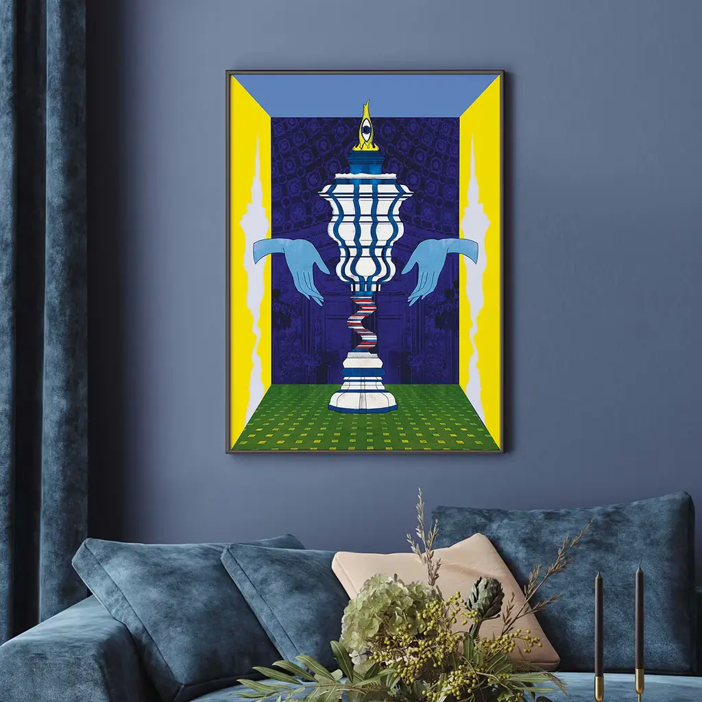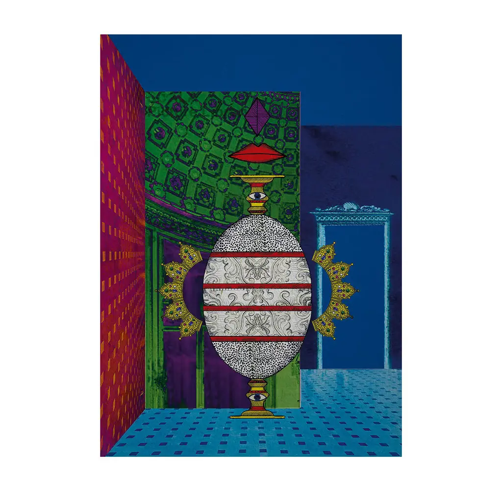 Numbered collectible print designed by Marika Tardio on 100% viscose textile. Each work is signed by the artist, numbered, and accompanied by a certificate of authenticity. Inspired by the extraordinary and fragile ivory vases made by Marcus Heiden. Spectacular for its structural complexity, it presents the upper part marked by horizontal ribs. Limited Edition of 15 pieces. Made Exclusively for Artemest.