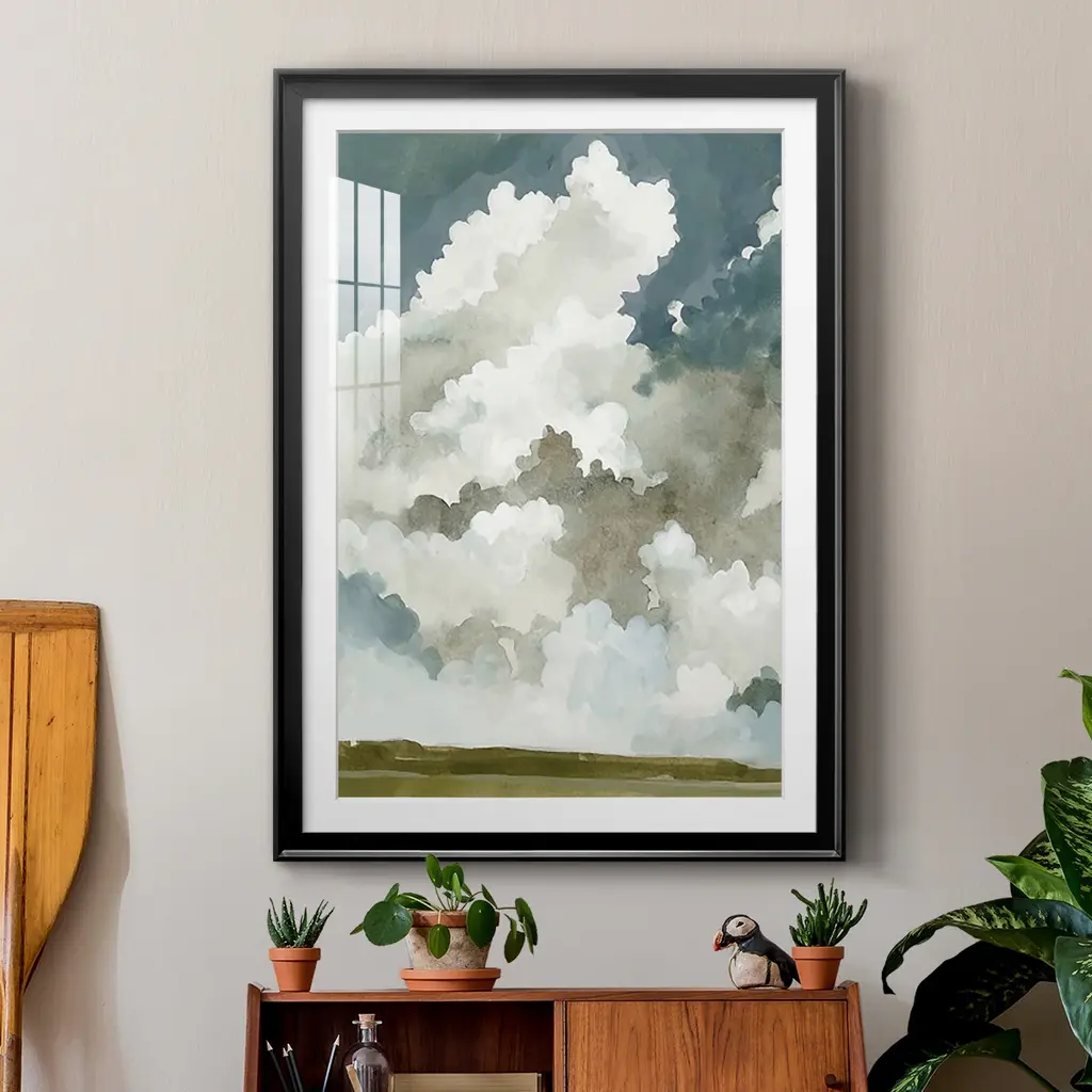 Vast Neutral Sky I Premium Framed Print - Ready to Hang A Premium Framed Print created to last. Framed in distressed wood and available in an array of sizes and colors Featuring a beveled a solid wood stretcher bar, each piece comes ready to hand 4 SIZES AVAILABLE 30.5''X42.5'' - Overall Size 26.5'X36.5'' - Overall Size 22.5''x30.5'' - Overall Size 18.5''x24.5'' - Overall Size Each piece is made to order. Each piece comes with hanging hardware. Made in the USA Ready to Hang Giclee Paper Print Acrylic Glass Beveled Matt Board