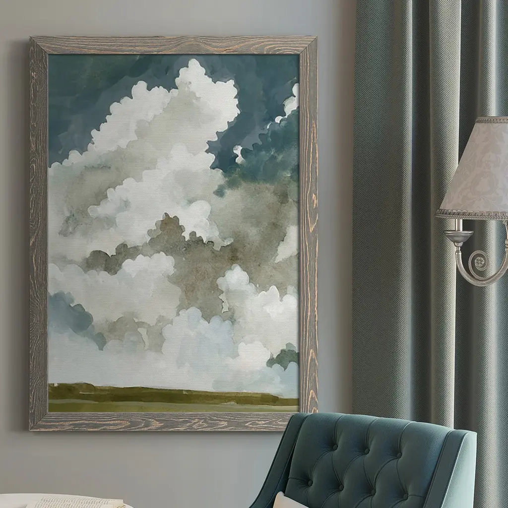 Vast Neutral Sky II Premium Framed Print - Ready to Hang A Premium Framed Print created to last. Framed in distressed wood and available in an array of sizes and colors Featuring a beveled a solid wood stretcher bar, each piece comes ready to hand 4 SIZES AVAILABLE 30.5''X42.5'' - Overall Size 26.5'X36.5'' - Overall Size 22.5''x30.5'' - Overall Size 18.5''x24.5'' - Overall Size Each piece is made to order. Each piece comes with hanging hardware. Made in the USA Ready to Hang